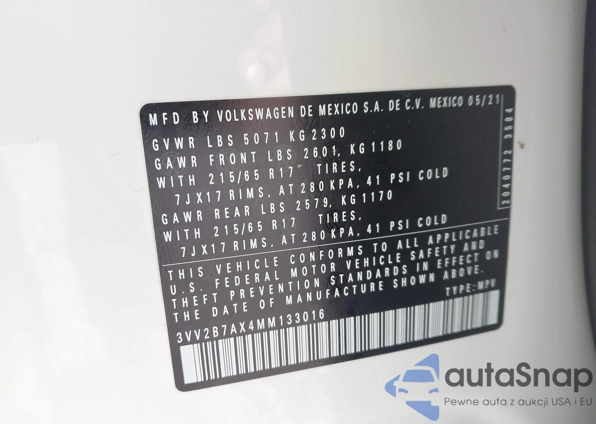 • VIN 3VV2B7AX4MM133016