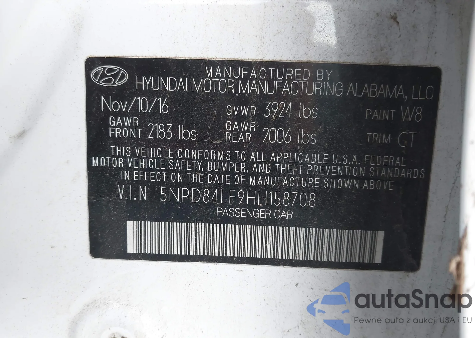 • VIN 5NPD84LF9HH158708