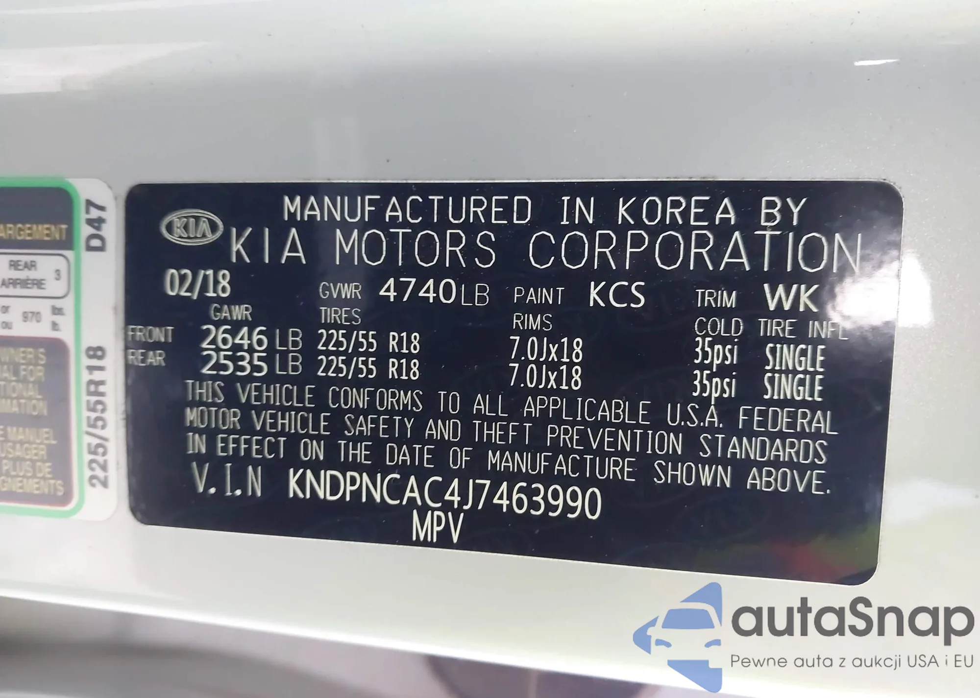 • VIN KNDPNCAC4J7463990
