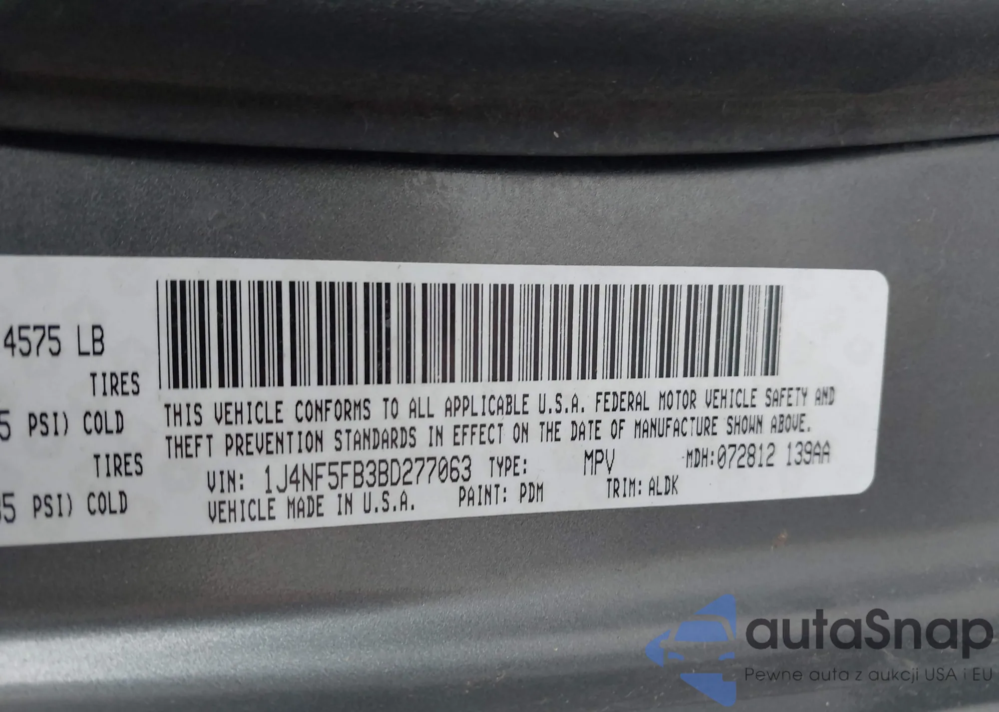 LOT: 43871563 VIN: 1J4NF5FB3BD277063