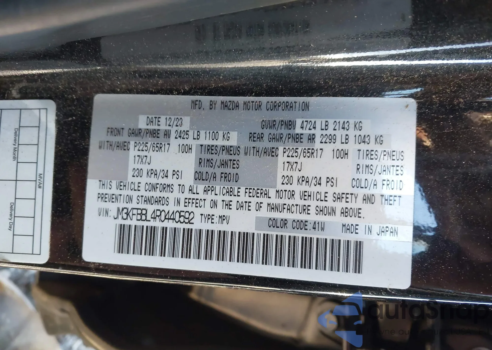 LOT: 43706949 VIN: JM3KKAHDXR1153354