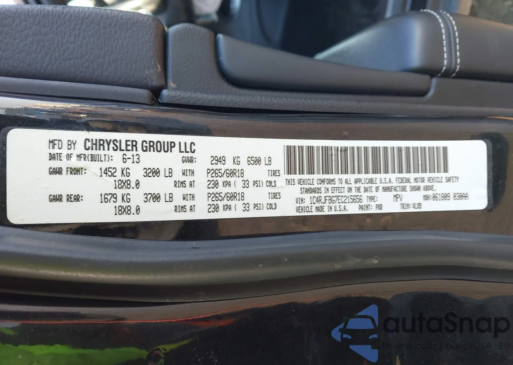 • VIN 1C4RJFBG7EC215656