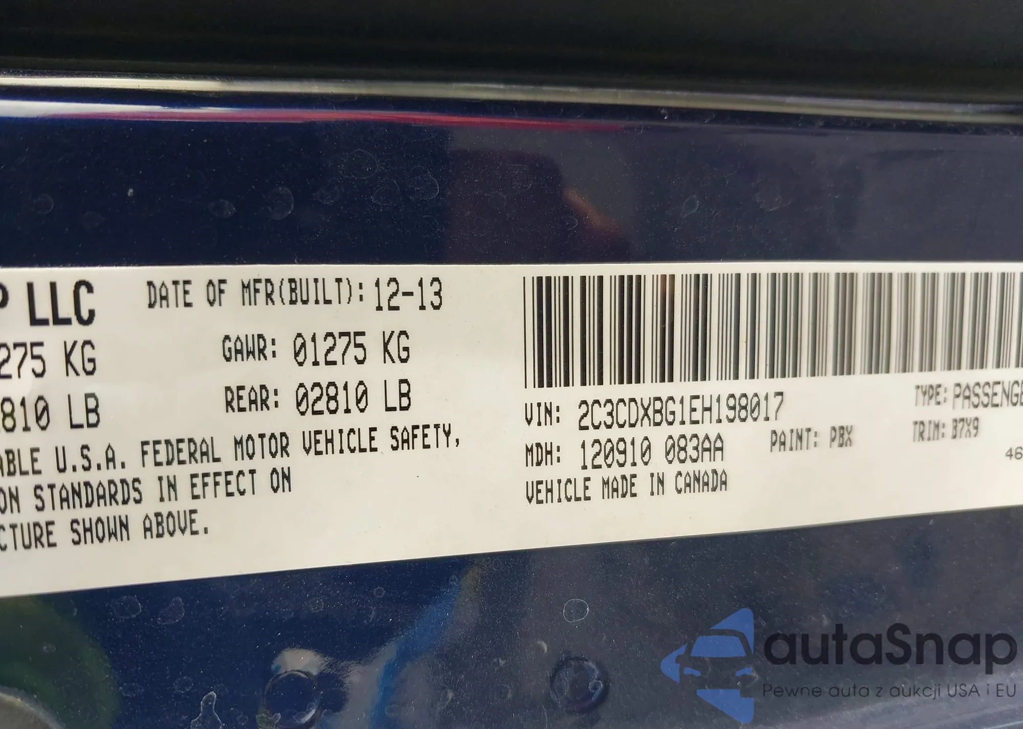 • VIN 2C3CDXBG1EH198017