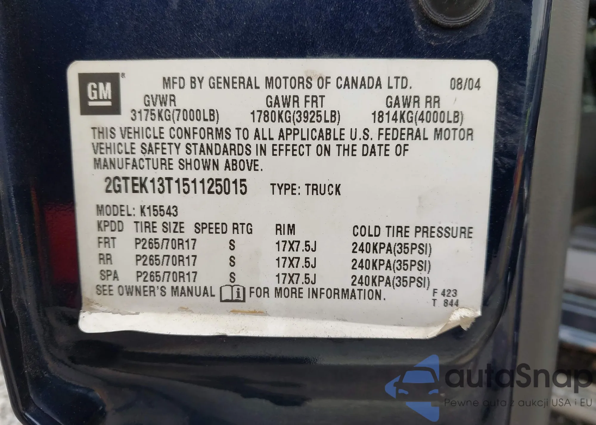 LOT: 43176800 VIN: WZ1DB0C05MW041865