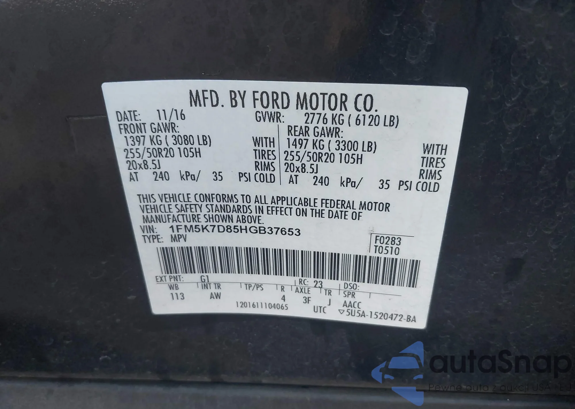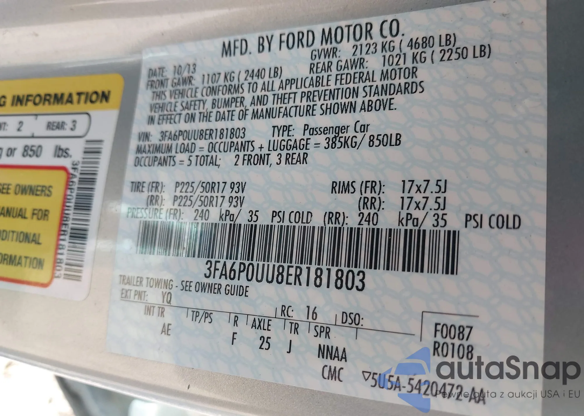 • VIN 3FA6P0UU8ER181803