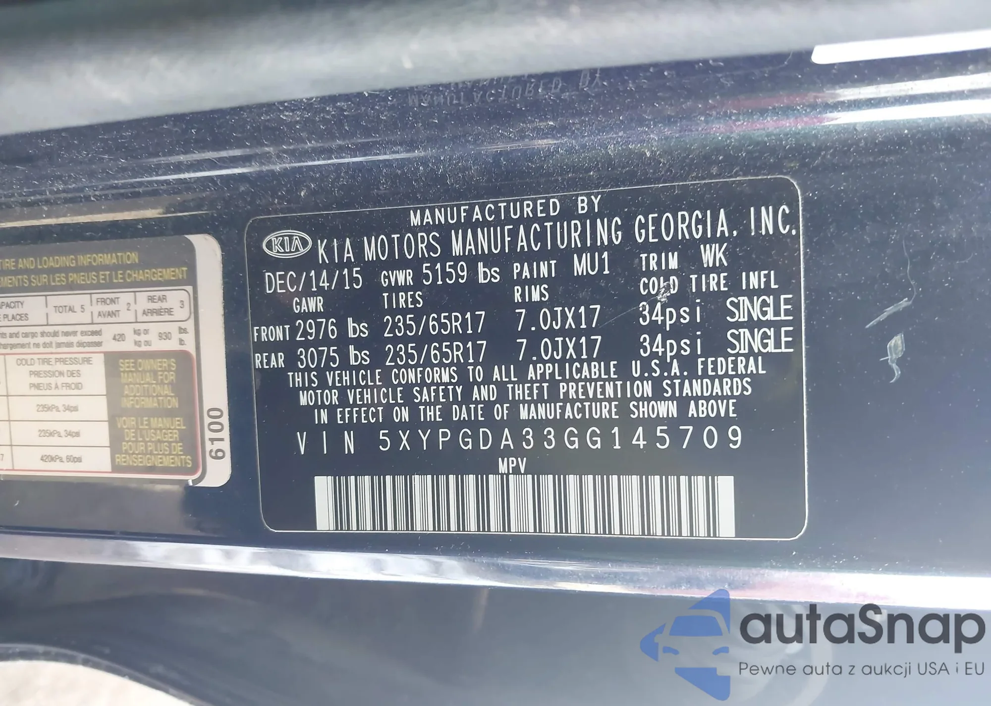 • VIN 5XYPGDA33GG145709