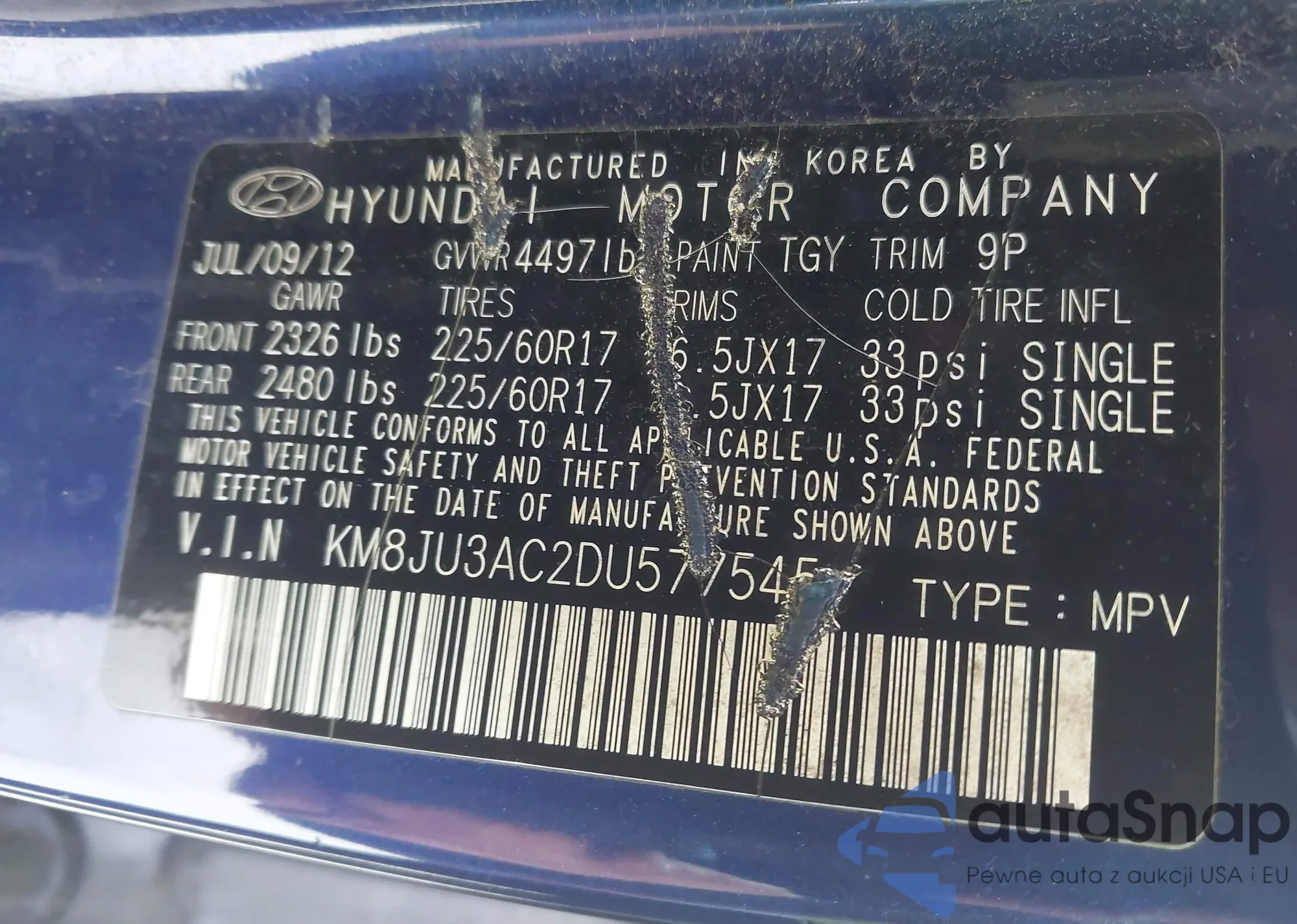 • VIN KM8JU3AC2DU577545