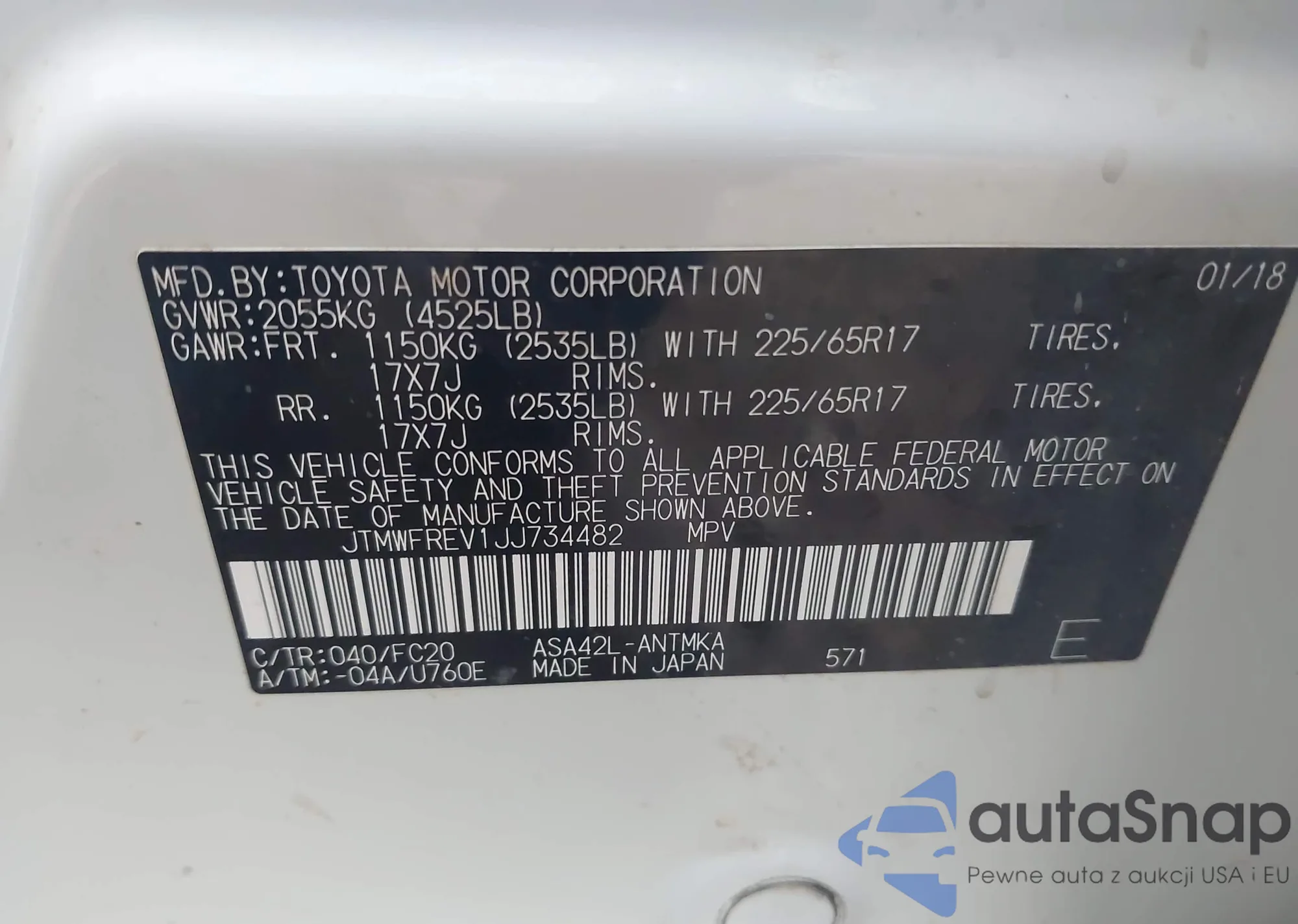 LOT: 43843211 VIN: JTHBE1KS2A0049893