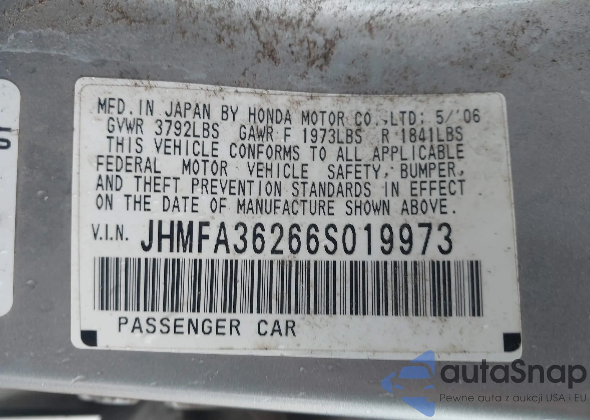 • VIN JHMFA36266S019973