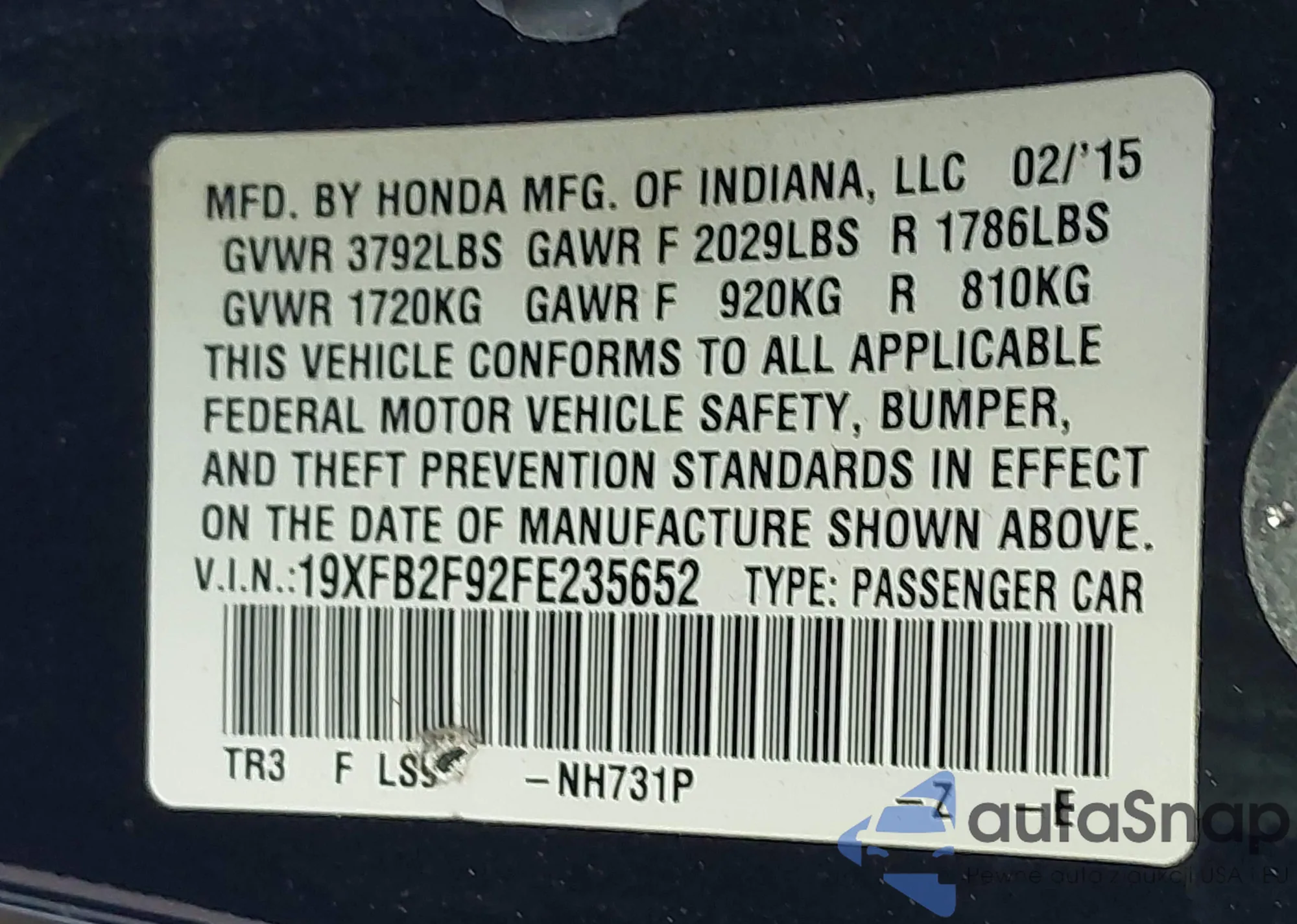 LOT: 44047723 VIN: JHMFA36266S019973