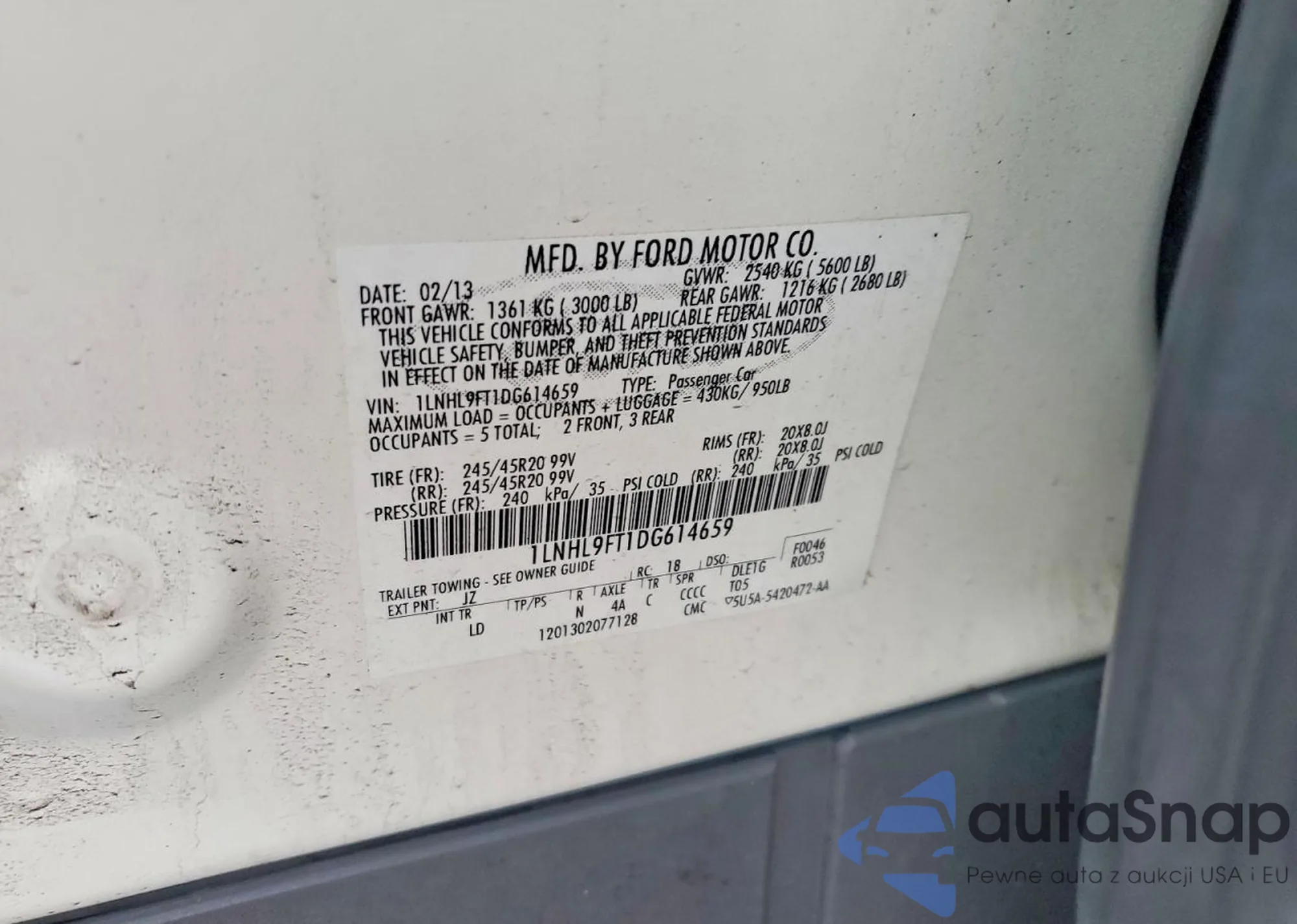 • VIN 1LNHL9FT1DG614659