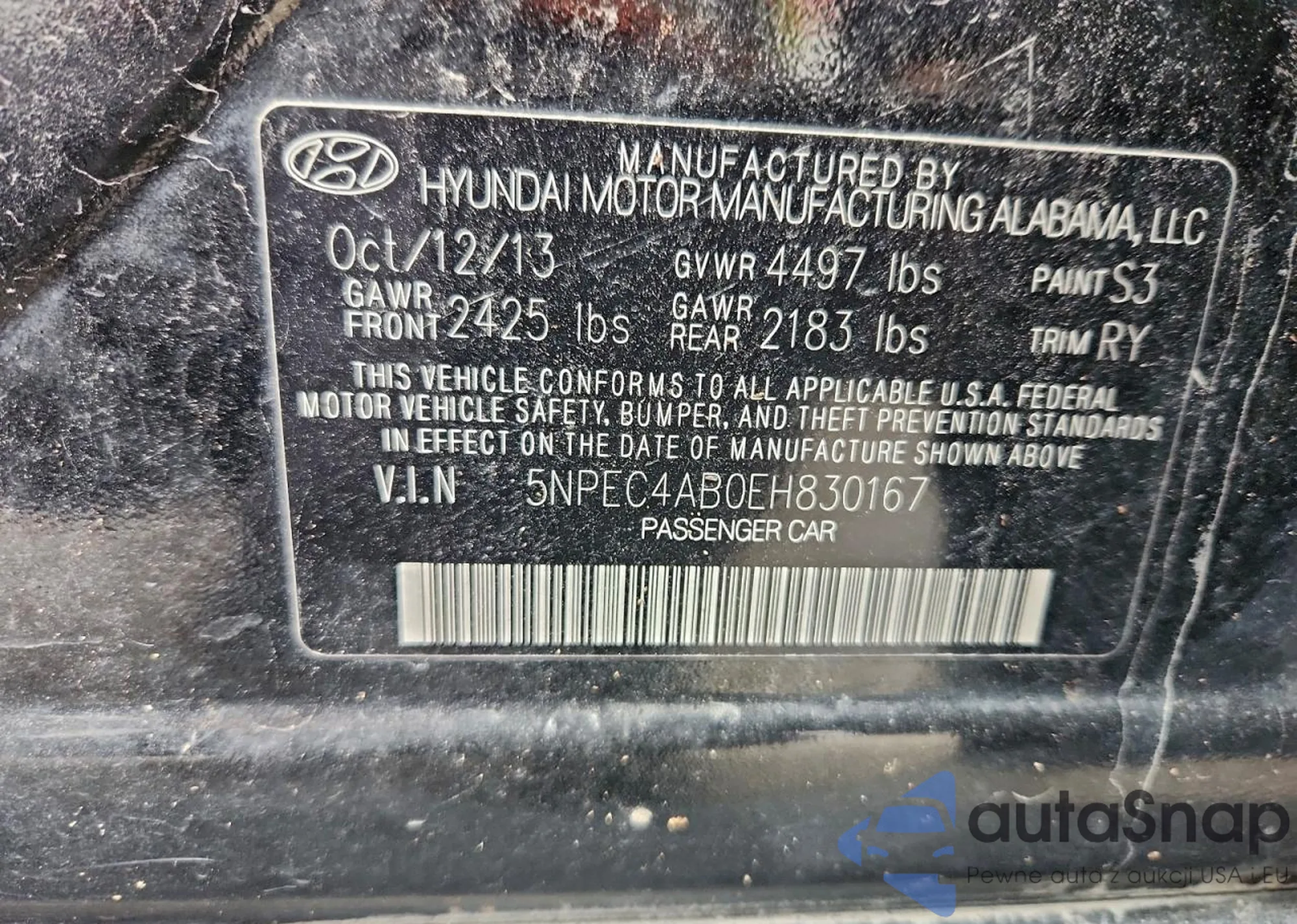 • VIN 5XYZUDLB5HG494619