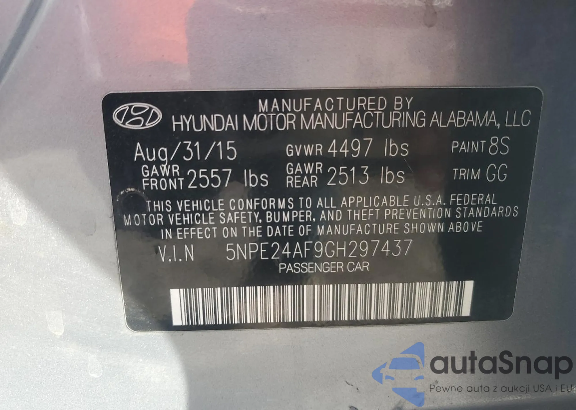 • VIN 5NPE24AF9GH297437