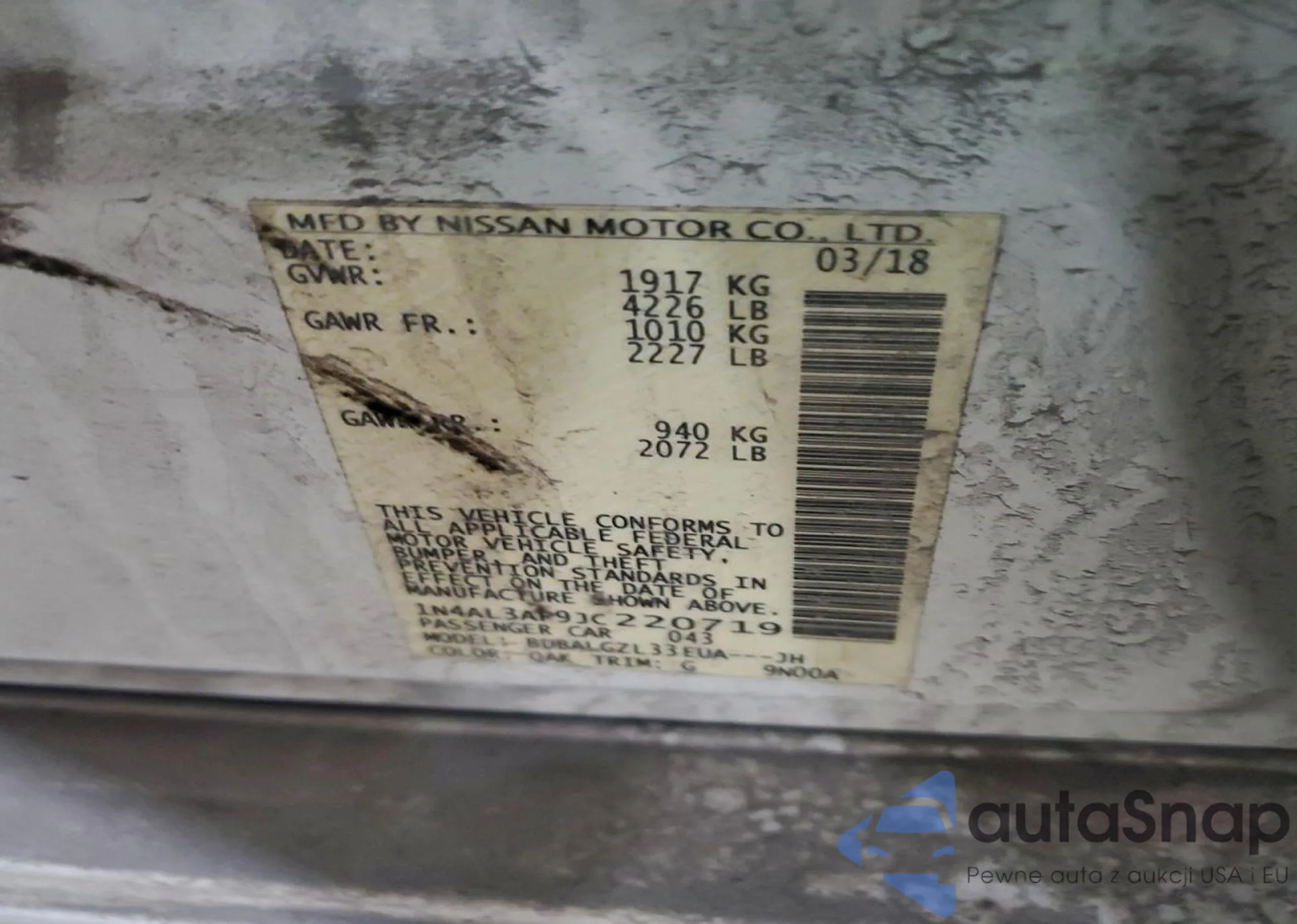 LOT: 97993045 VIN: 1N4AL3AP9JC220719