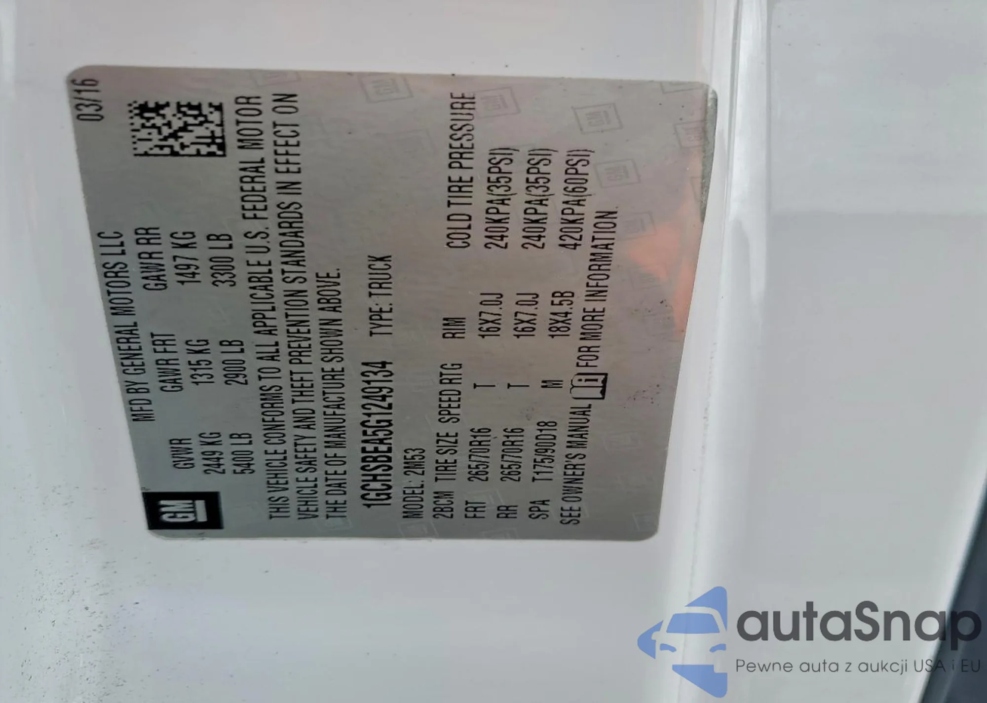 • VIN 1GCHSBEA5G1249134
