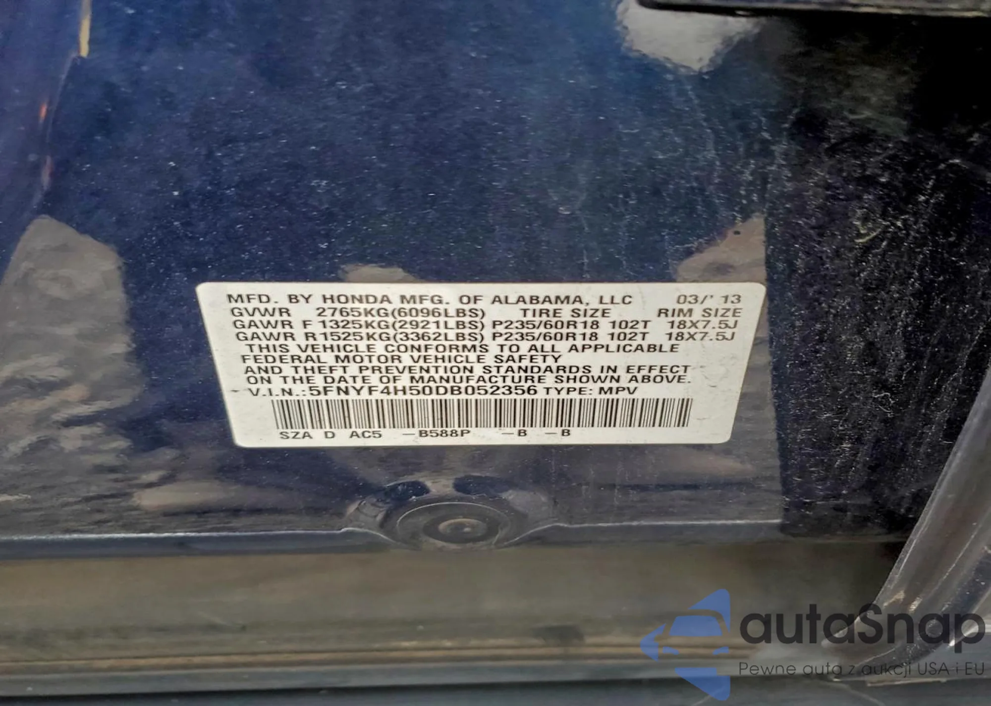 LOT: 97834405 VIN: 2HGFA1F54AH586023