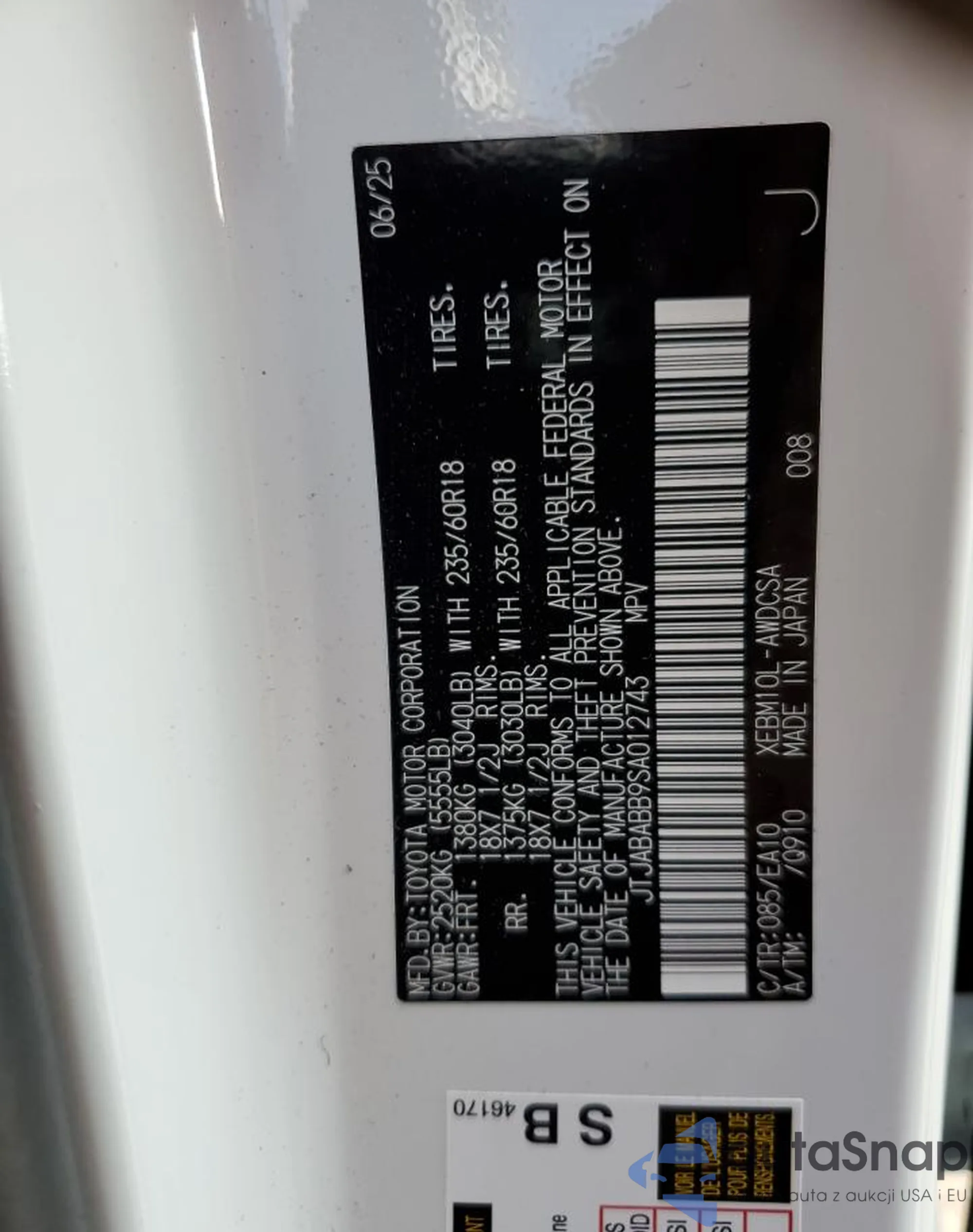 • VIN JTJABABB9SA012743