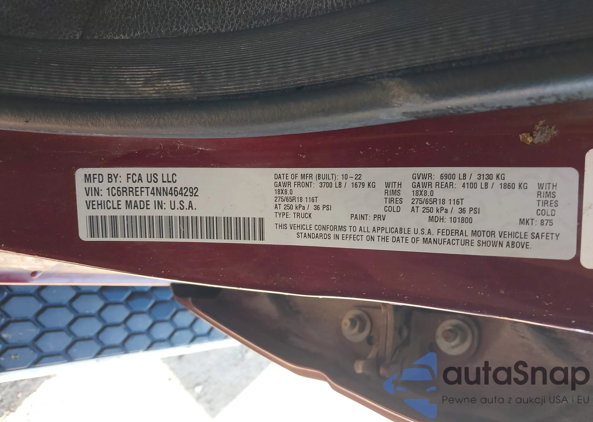 LOT: 43452270 VIN: 1C6RREFT4NN464292