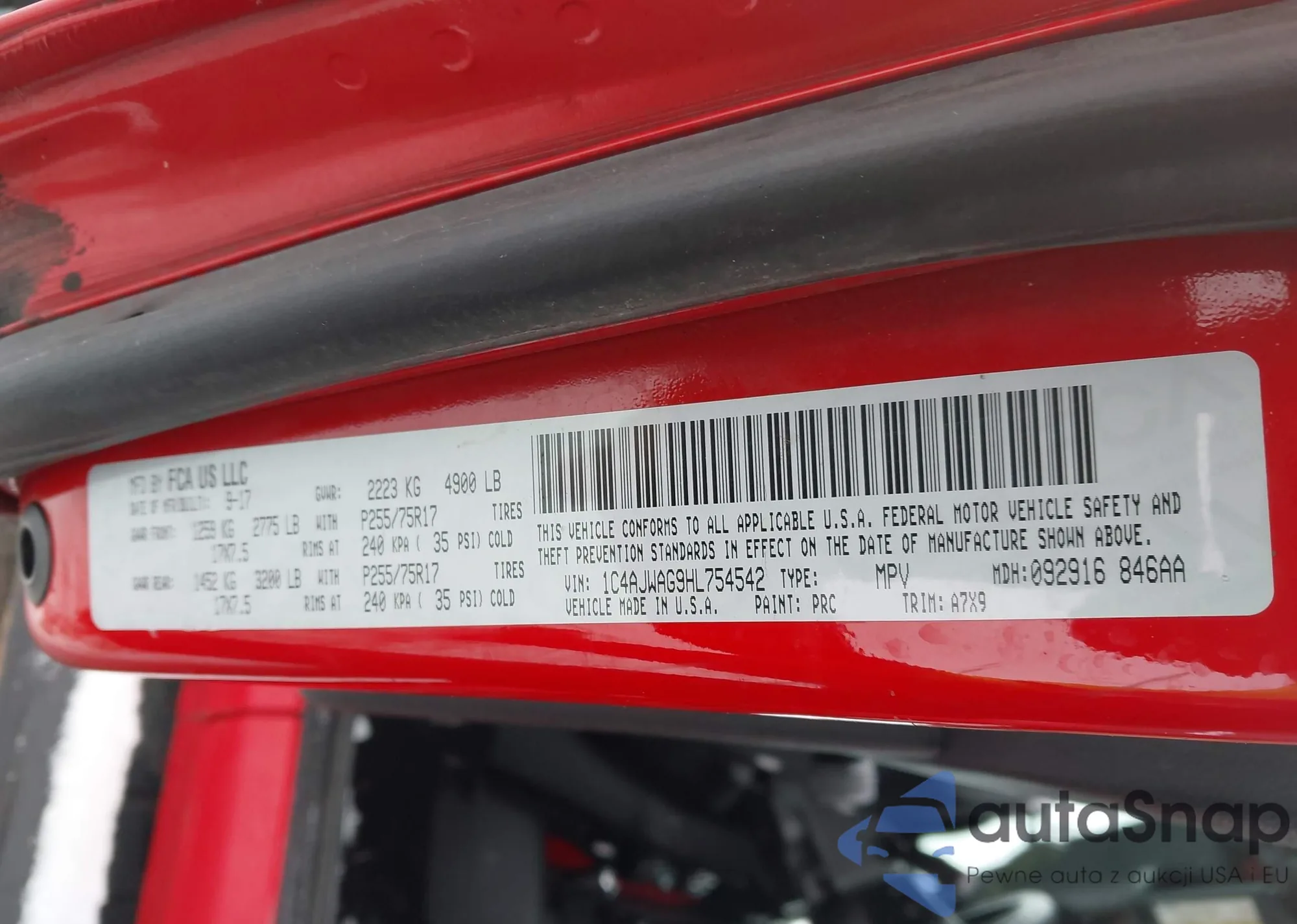 LOT: 43909054 VIN: 1C4PJMCBXFW757963