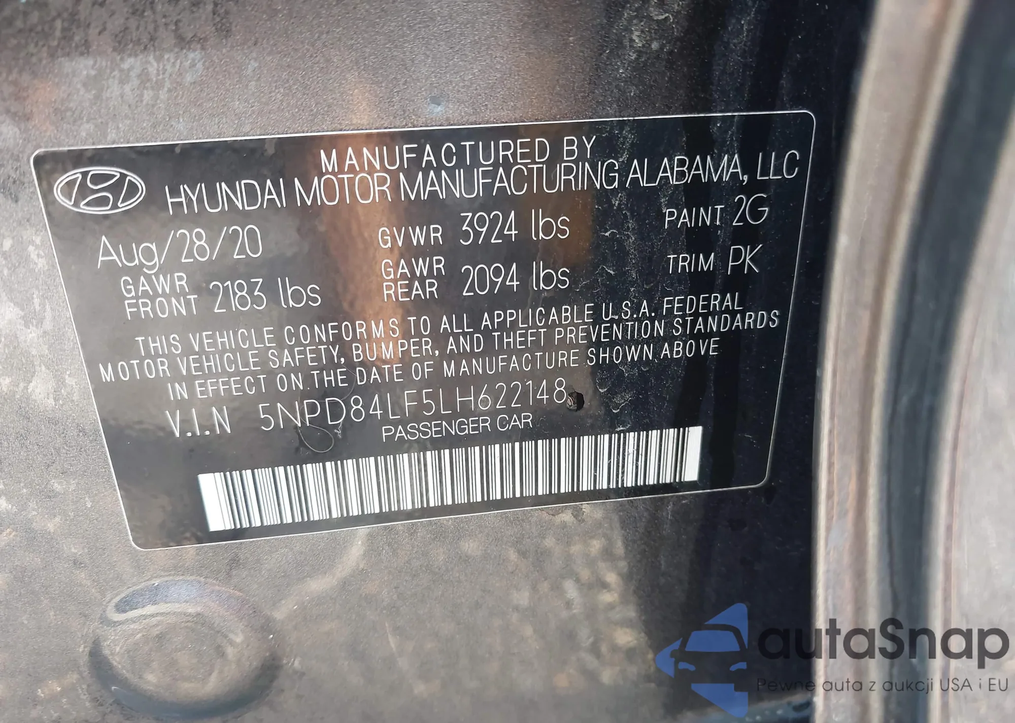 • VIN 5NPD84LF5LH622148