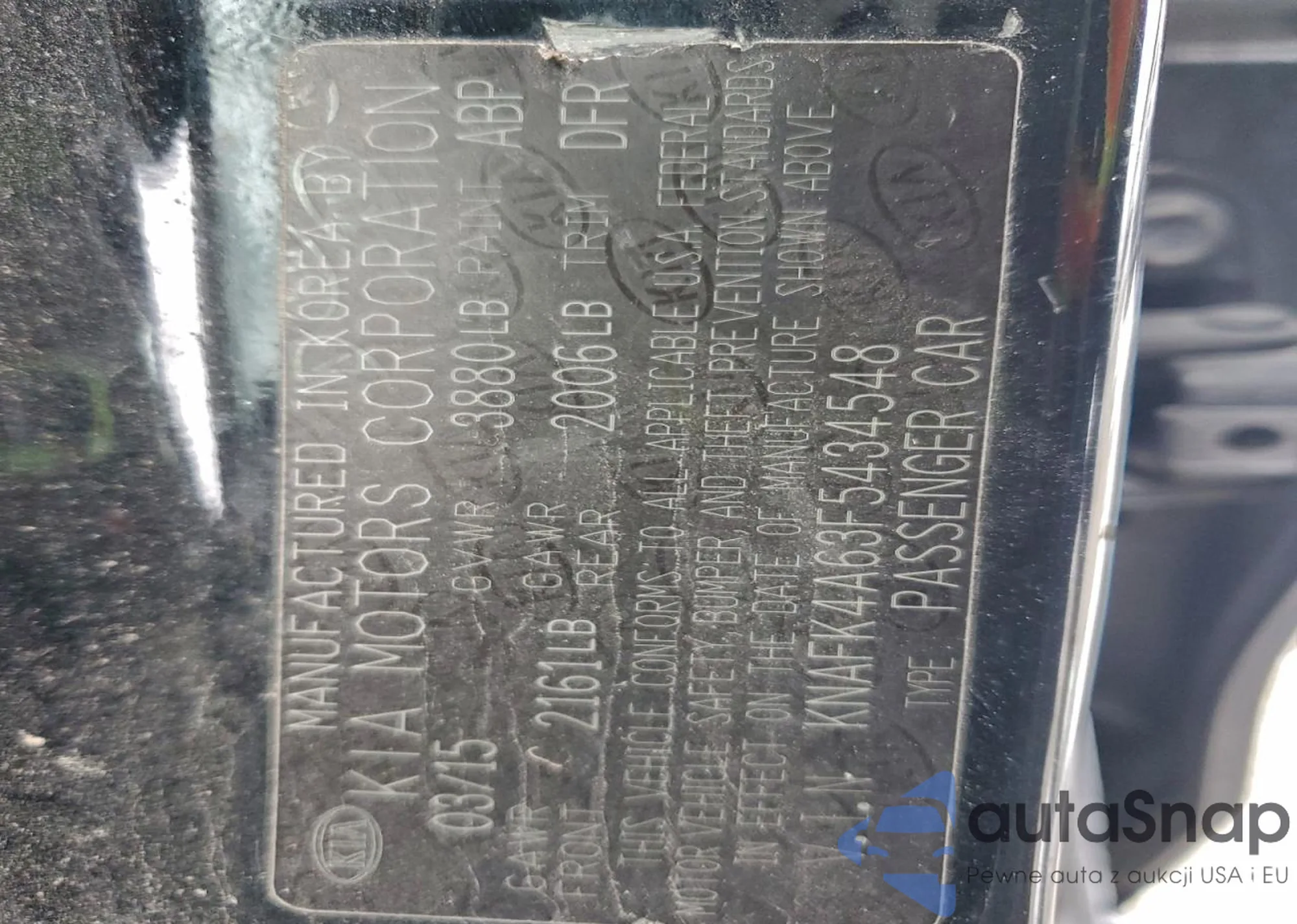 • VIN KNAFK4A63F5434548