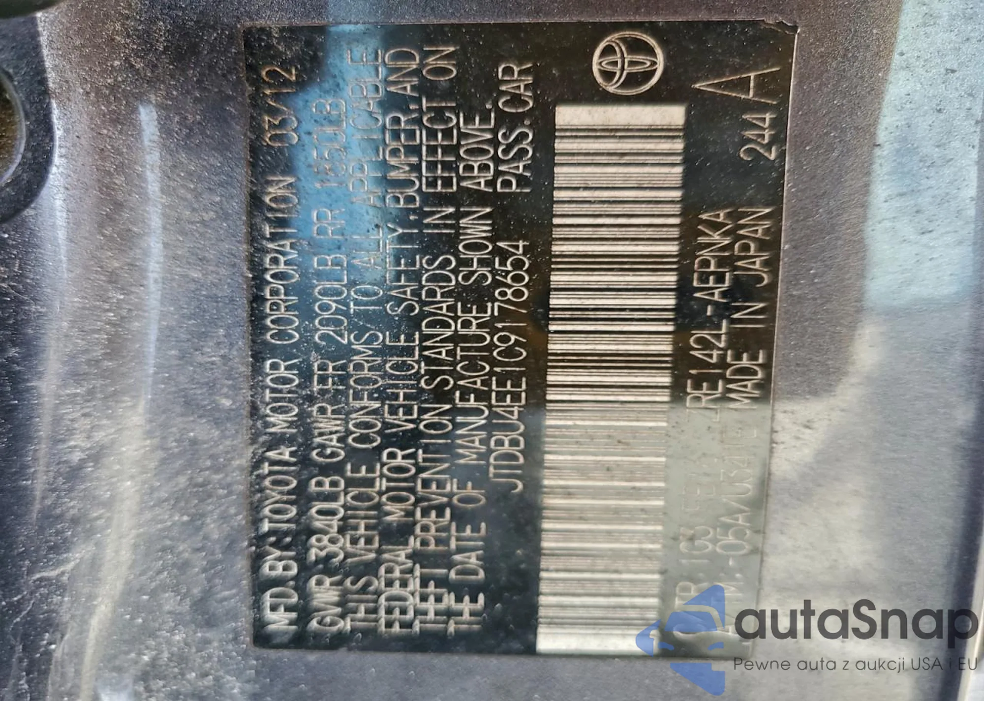 LOT: 99600955 VIN: JTDBU4EE1C9178654