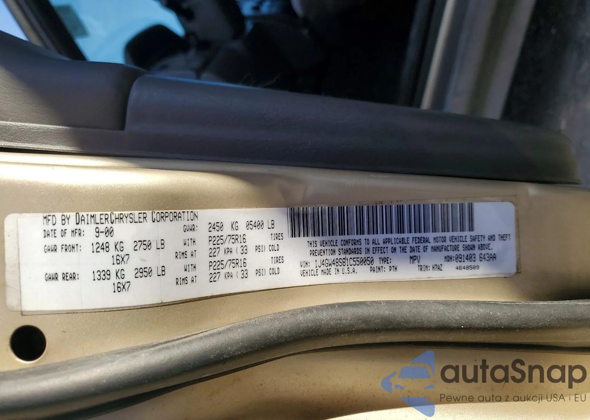 LOT: 72395935 VIN: 1J4GW48S61C550050