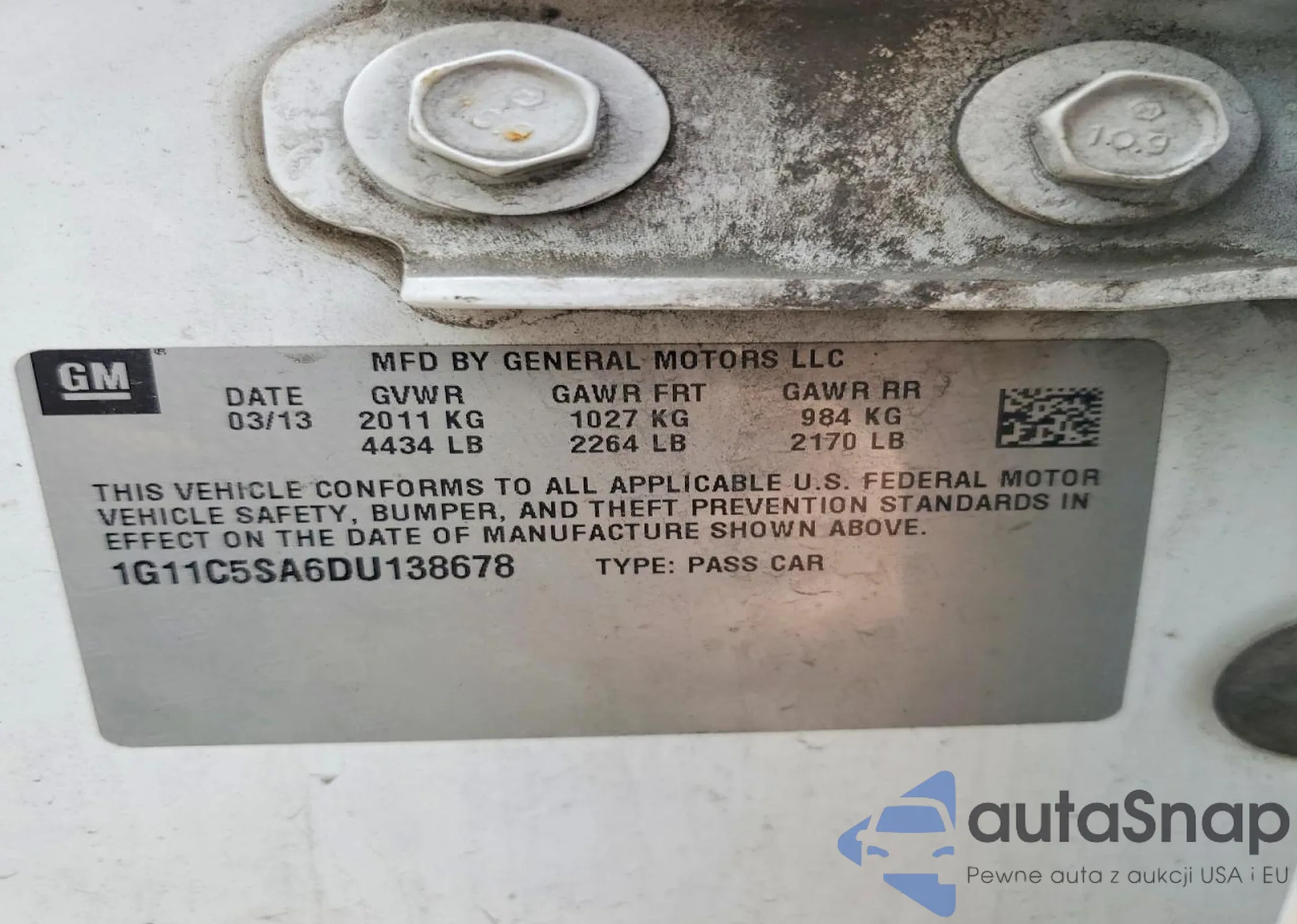 LOT: 99779745 VIN: 1G11C5SA6DU138678