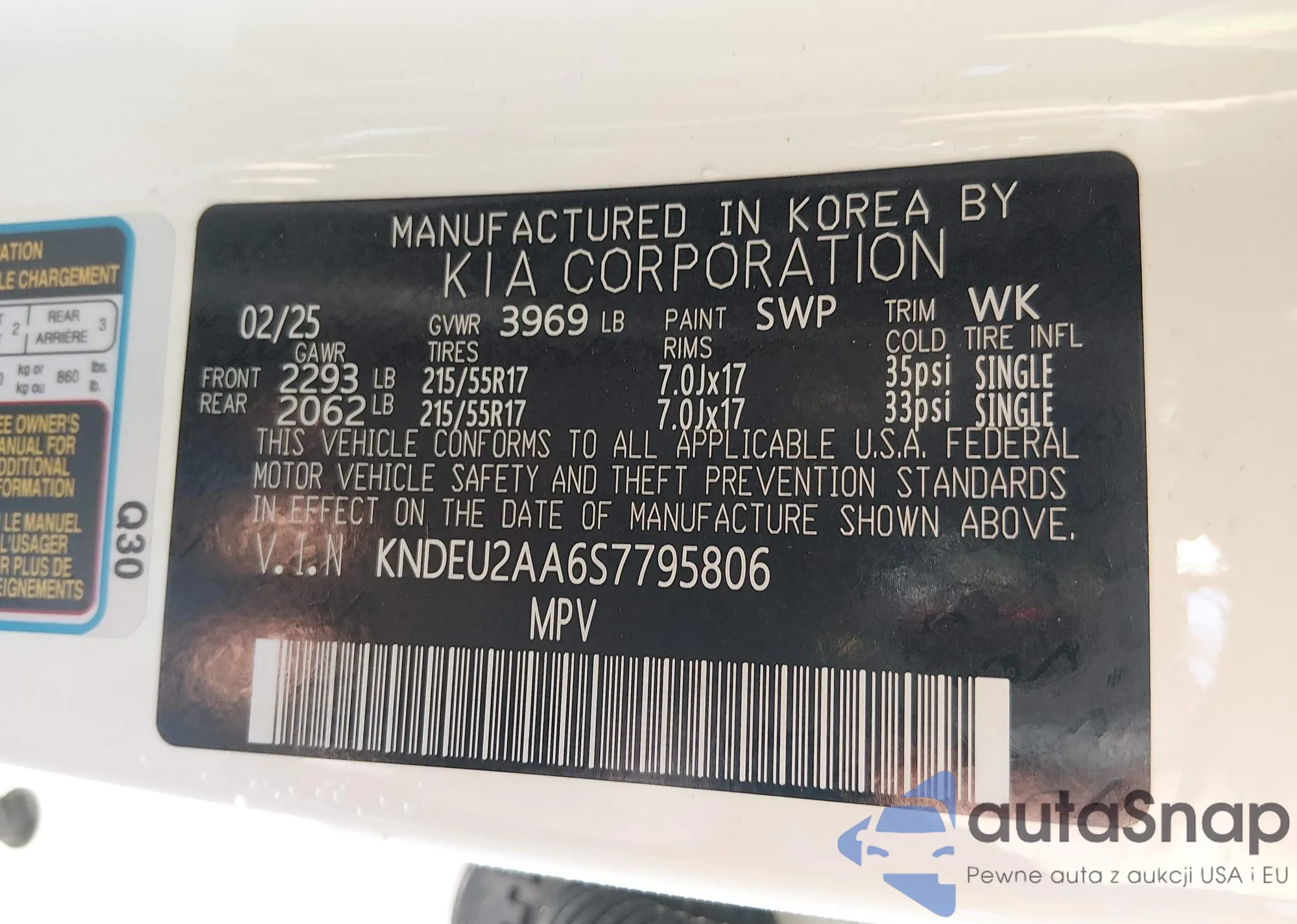 LOT: 43898362 VIN: KNAE15LA2M6098033