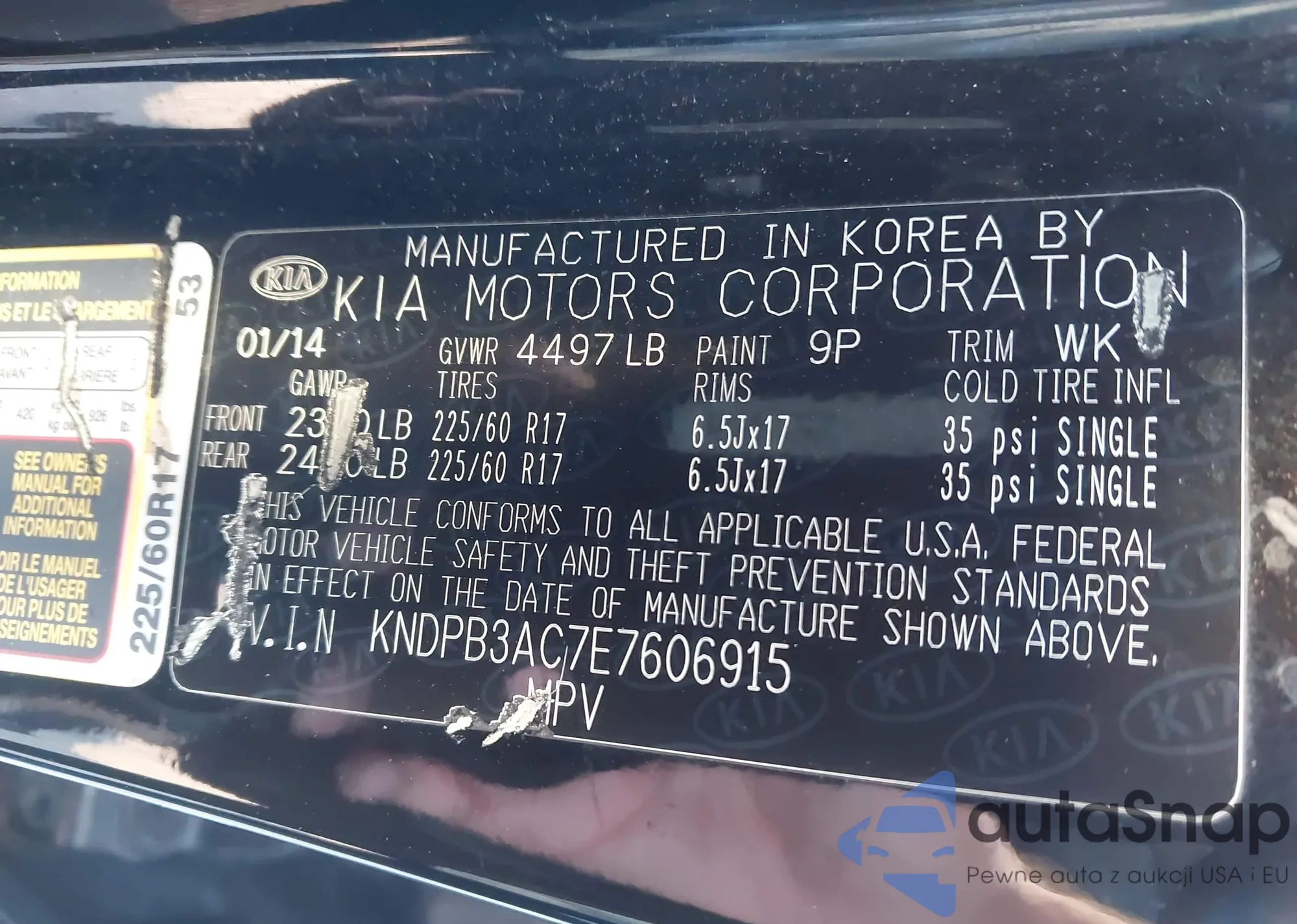 • VIN KNDPB3AC7E7606915
