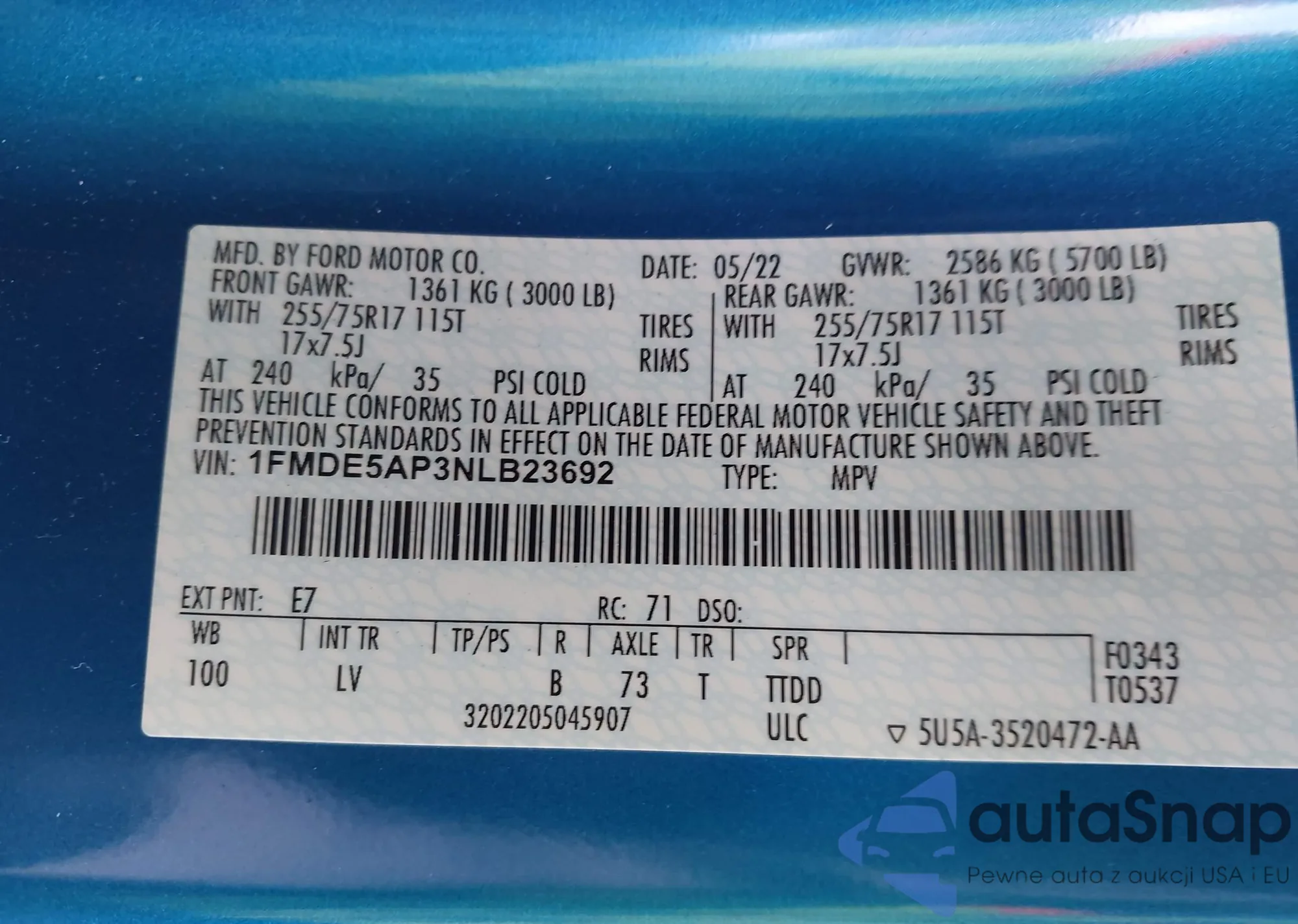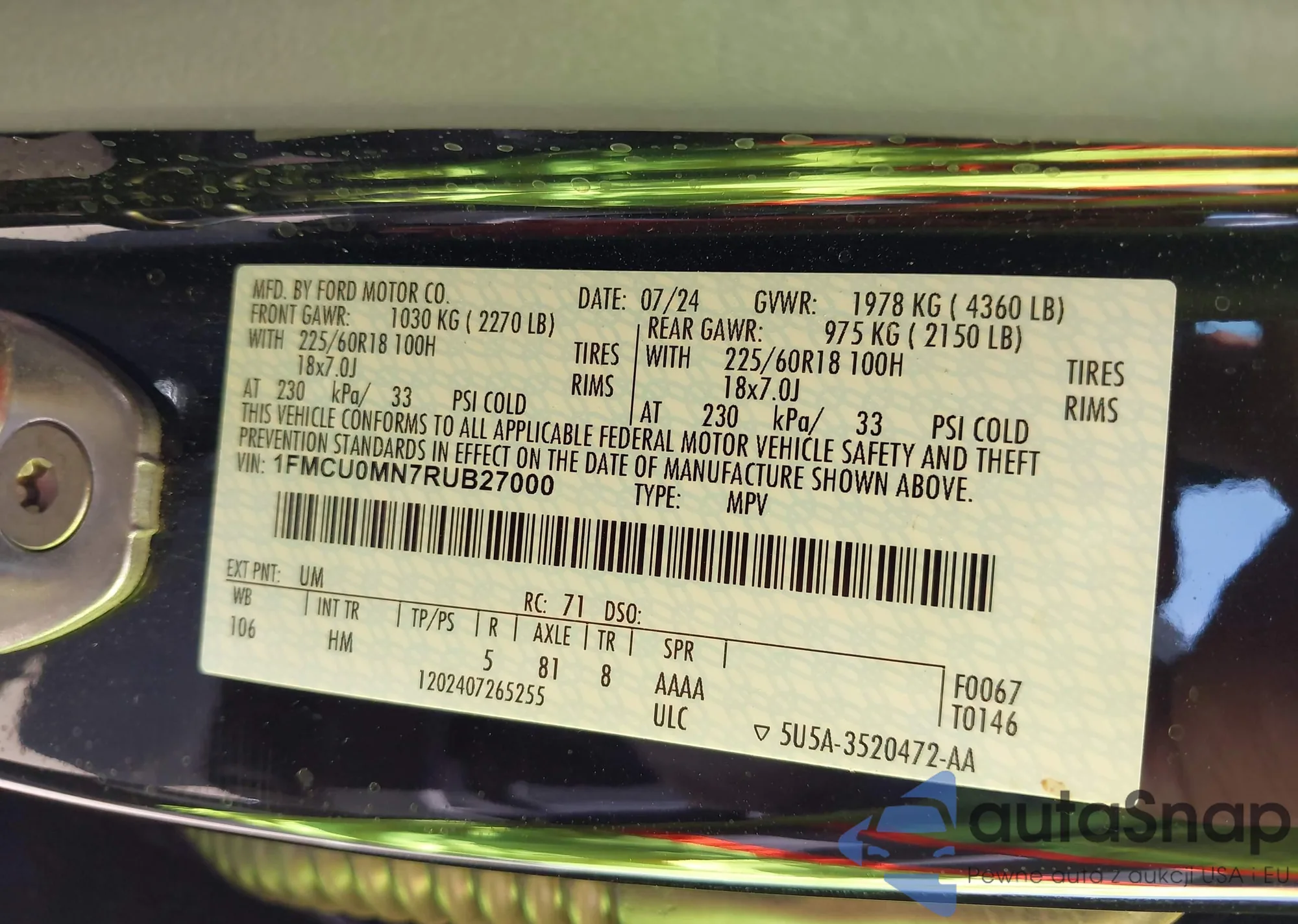 • VIN 1FMCU0MN7RUB27000