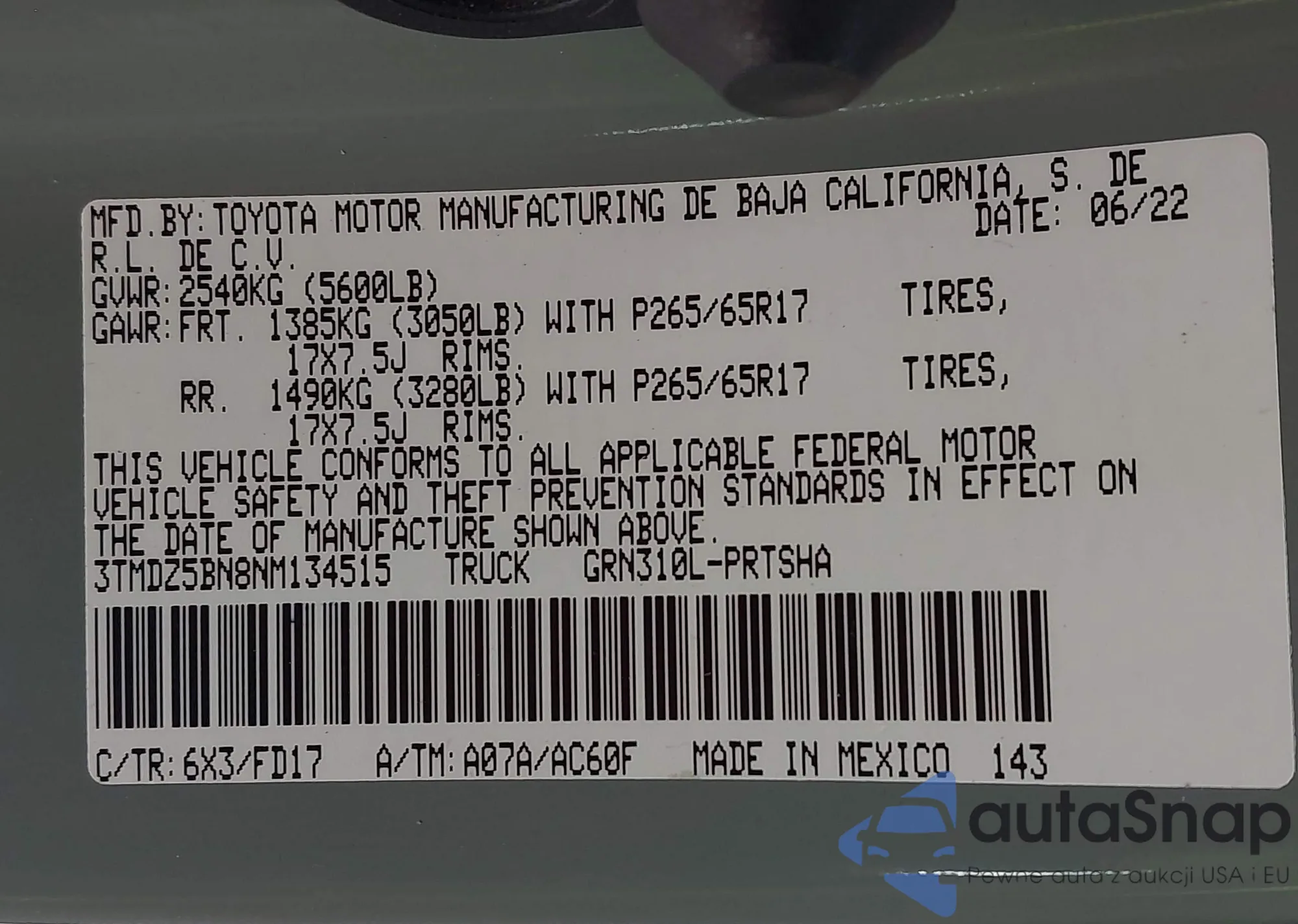 • VIN NMTKHMBX8JR040231