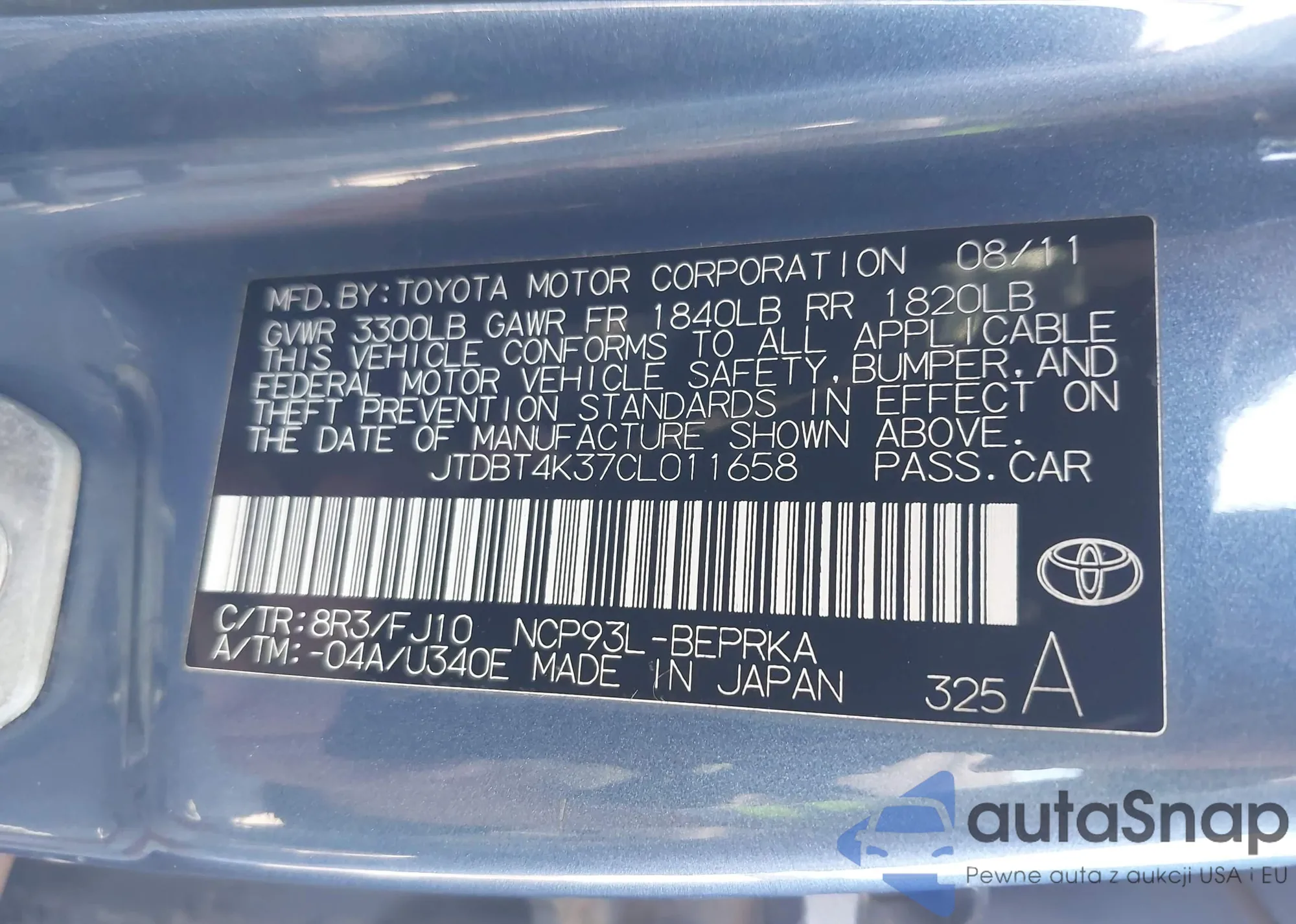 LOT: 43610061 VIN: JTDBT4K37CL011658