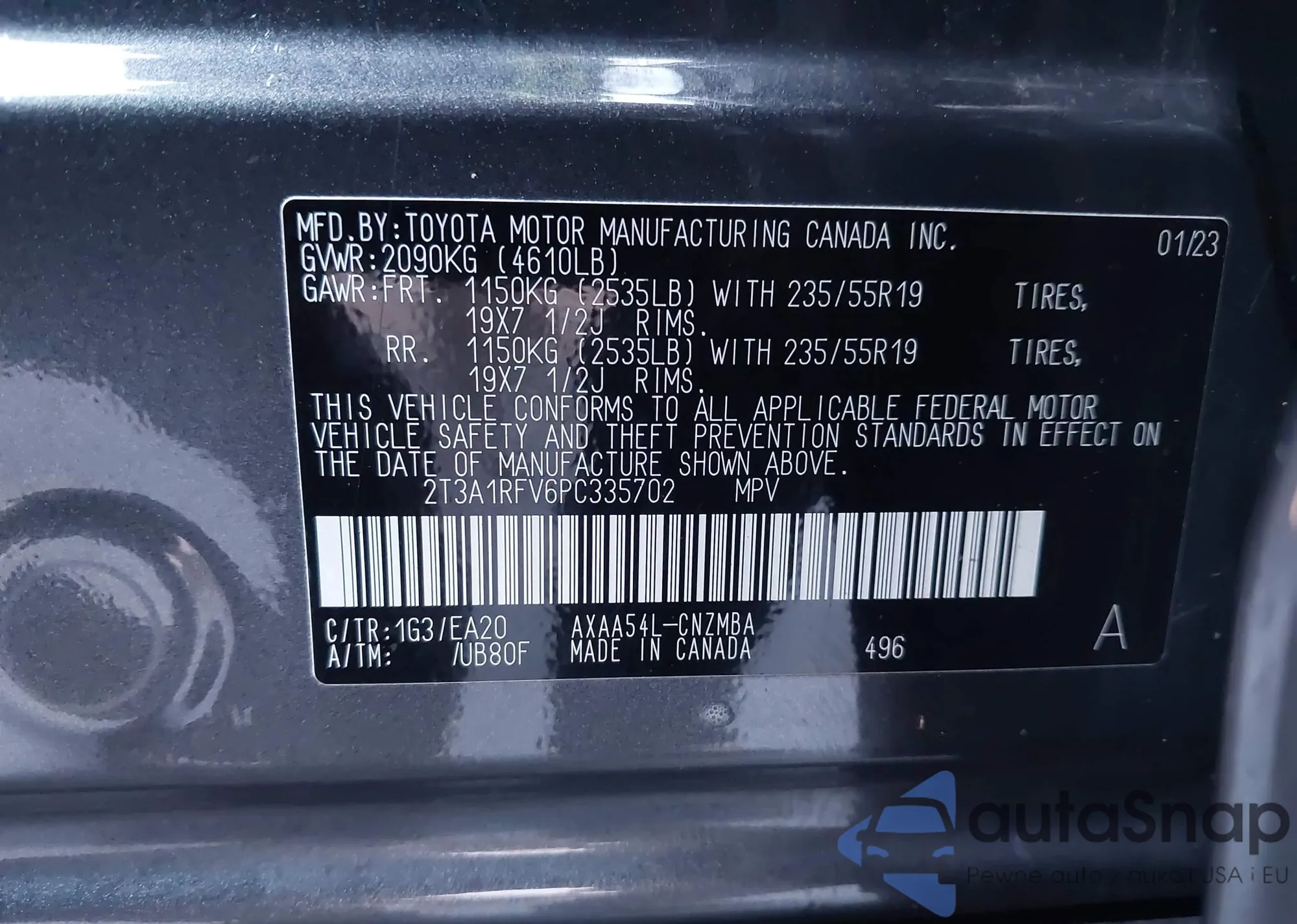• VIN 2T3A1RFV6PC335702