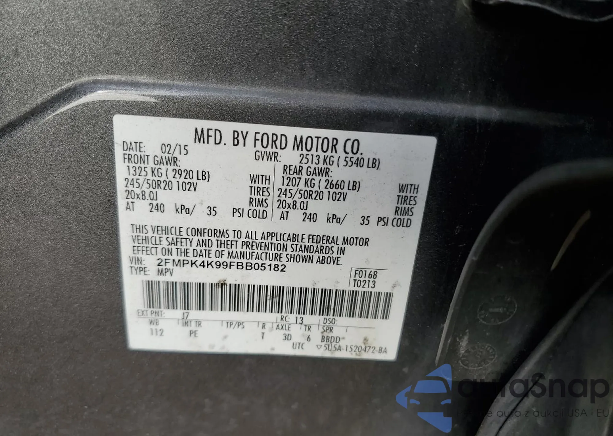 • VIN 2FMPK4K99FBB05182