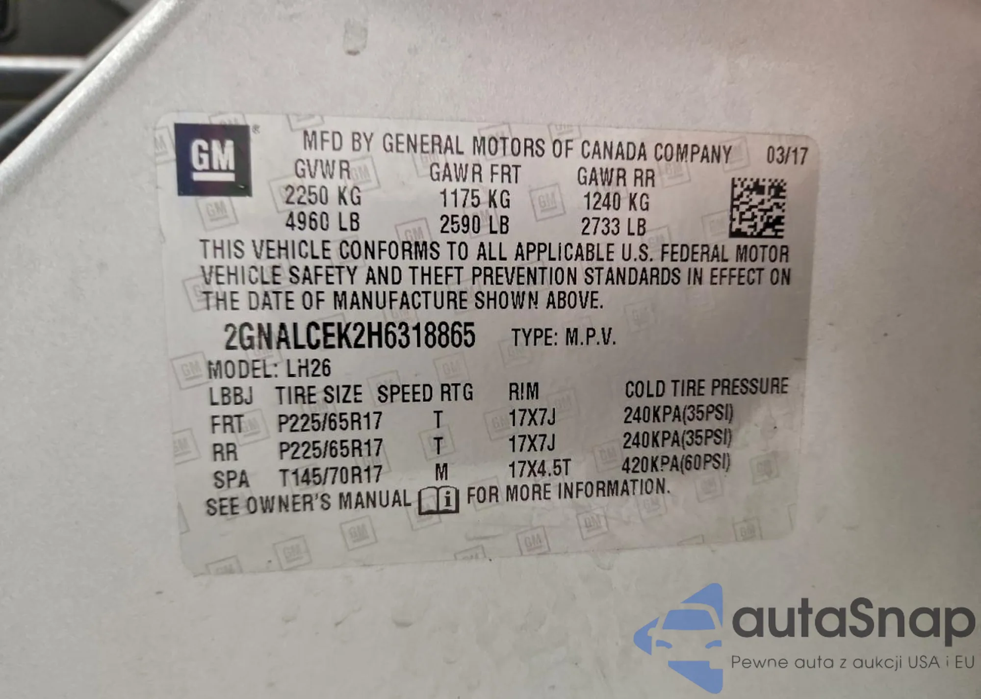 • VIN 2GNALCEK2H6318865