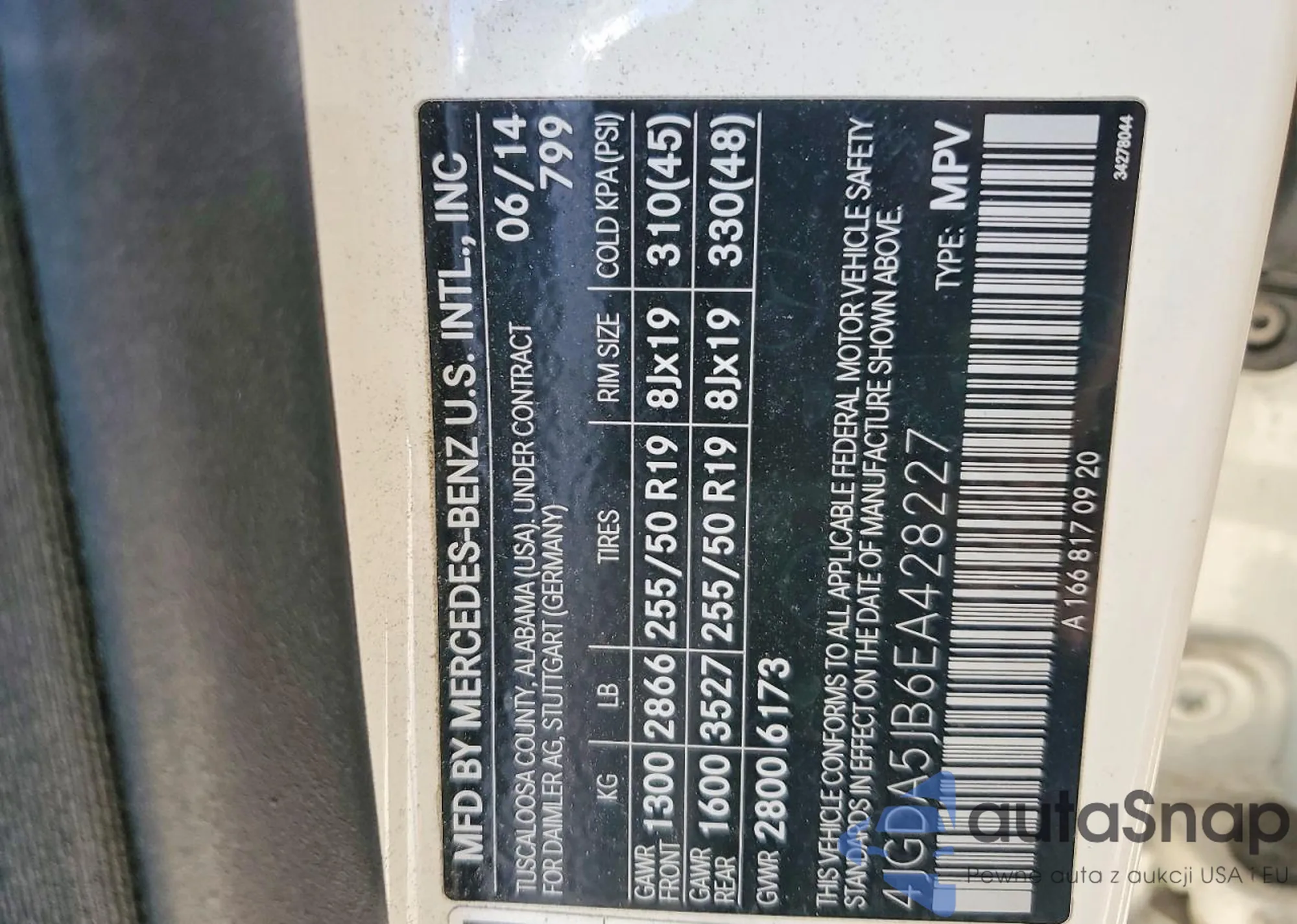 • VIN 4JGDA5JB6EA428227
