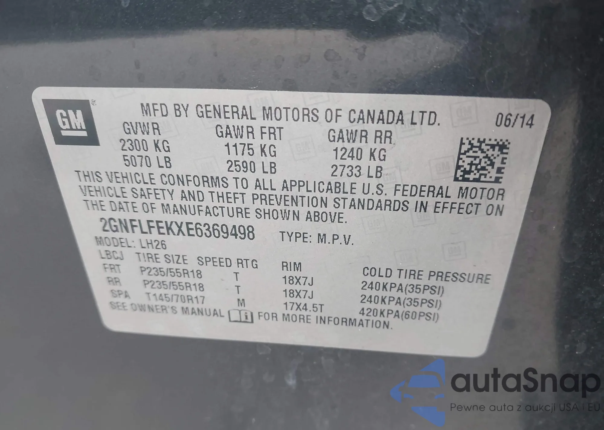 LOT: 44159127 VIN: 2GNFLFEKXE6369498