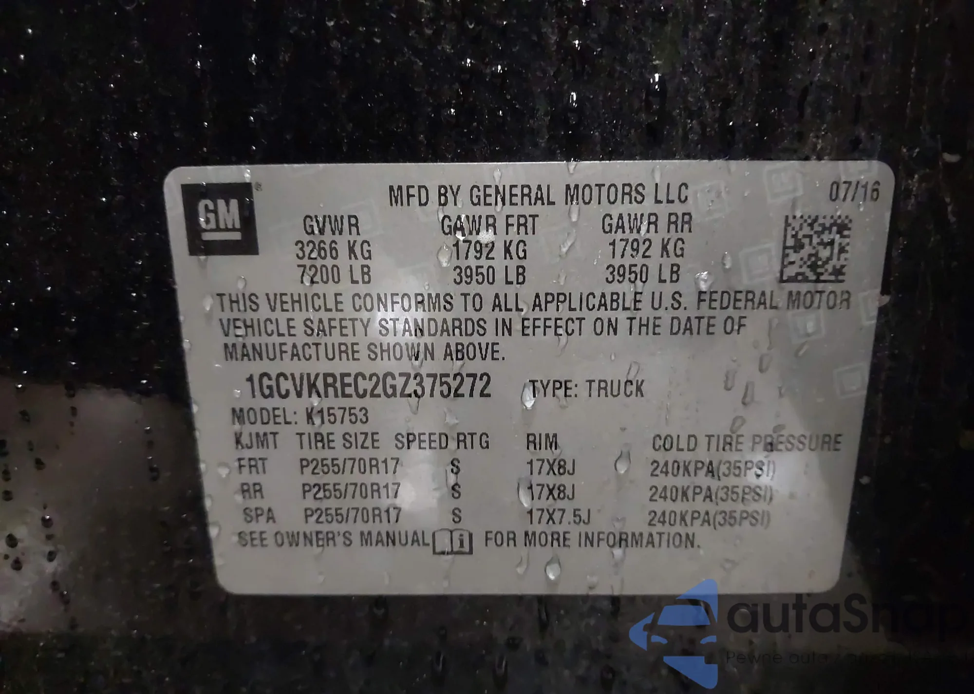 LOT: 43510582 VIN: 1GCVKREC2GZ375272