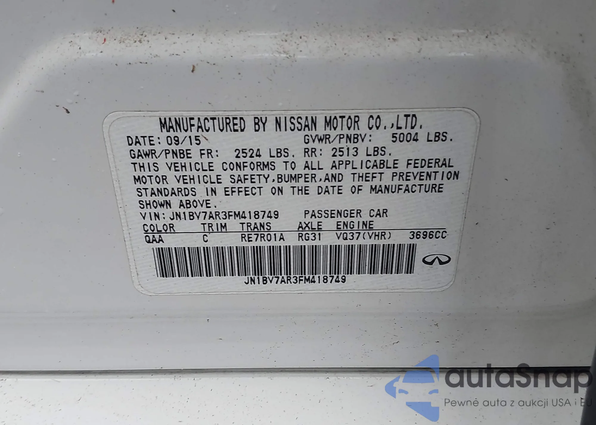 LOT: 43559580 VIN: JN1BV7AR3FM418749