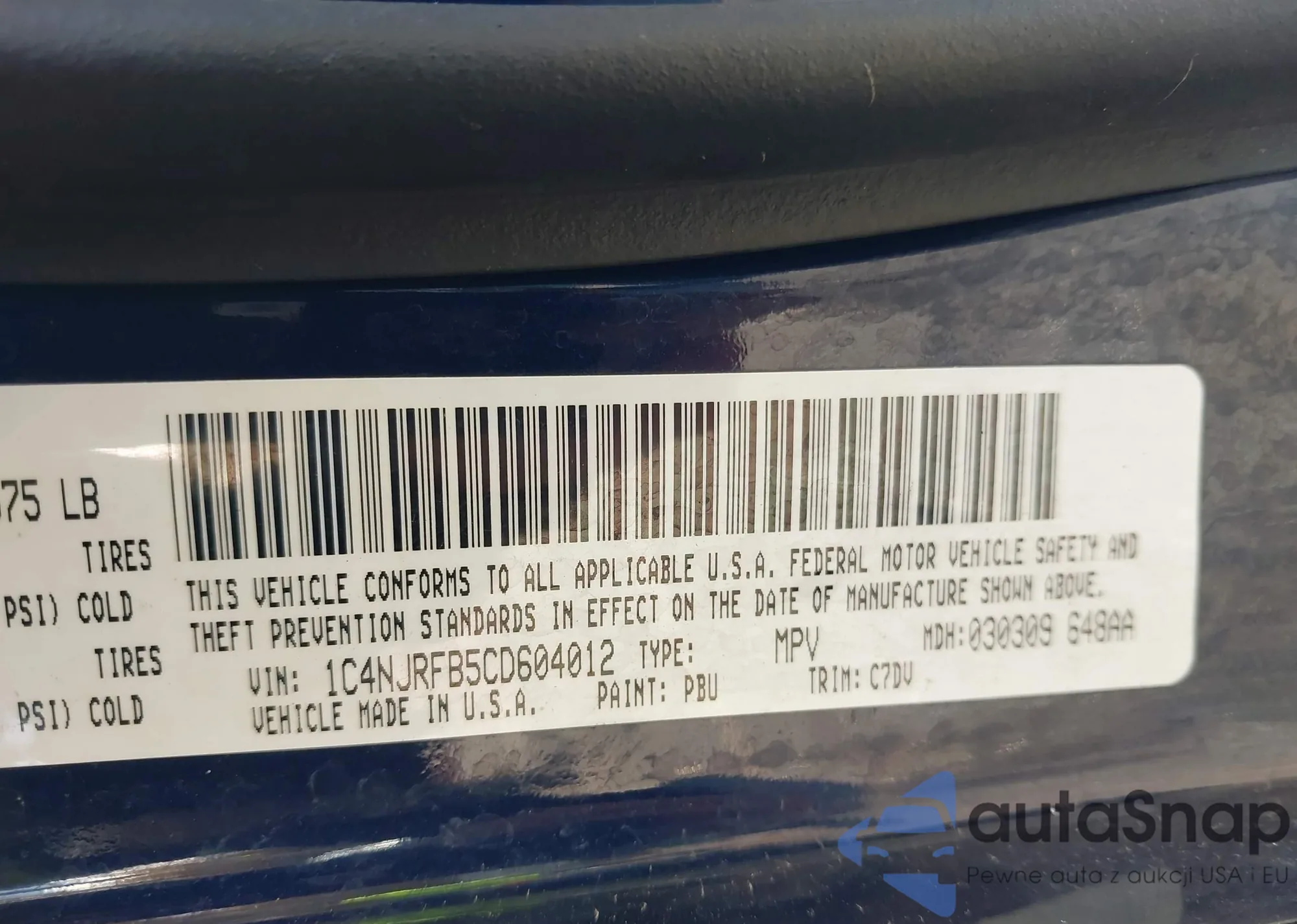 • VIN 1C4PJMAB6HW555742