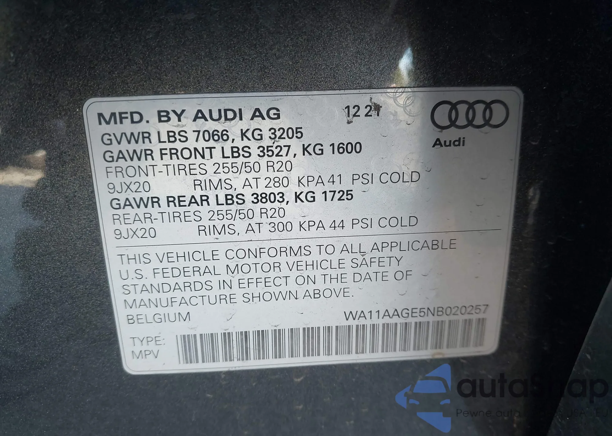 • VIN WA11AAGE5NB020257