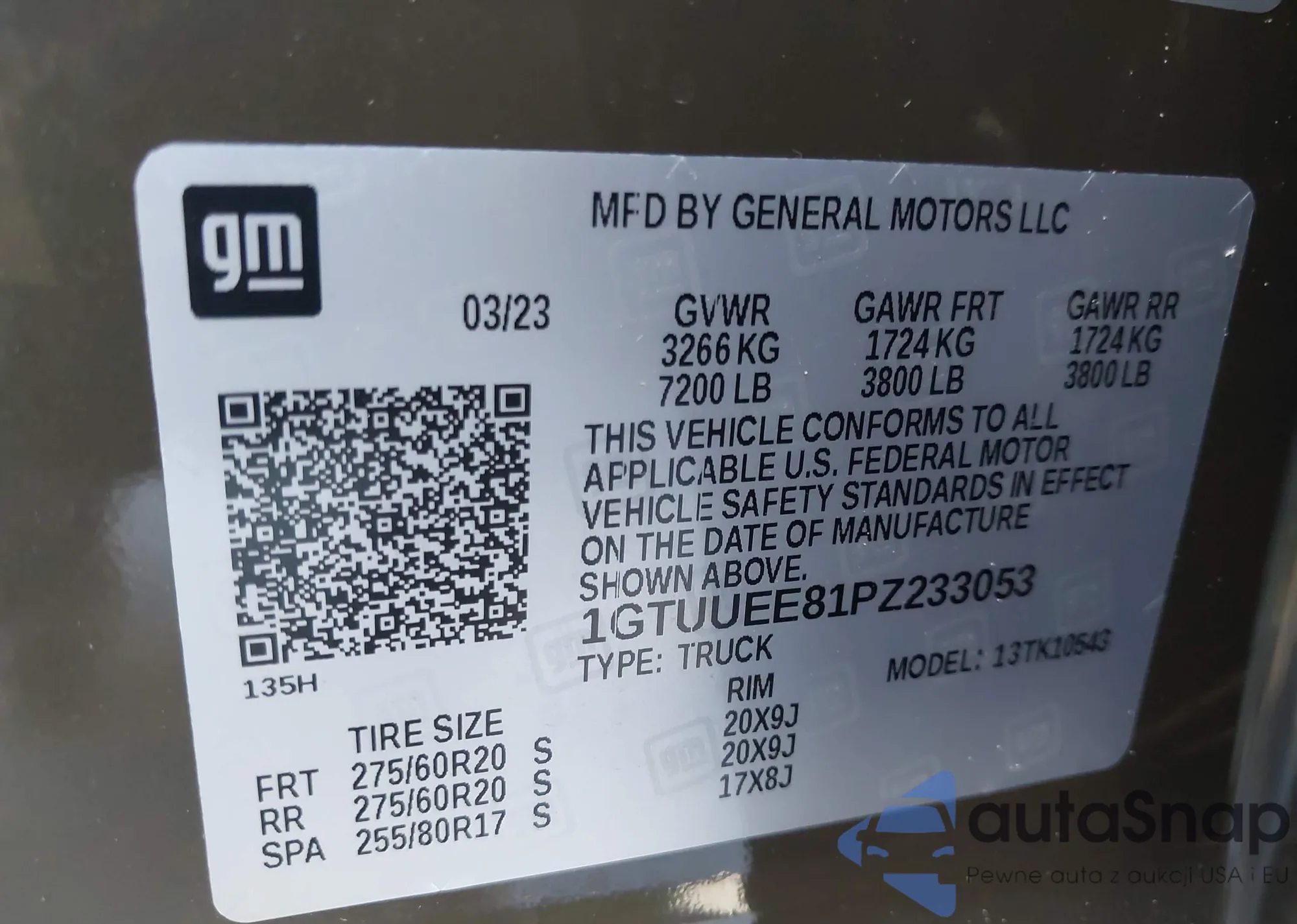 • VIN 1GTUUEE81PZ233053