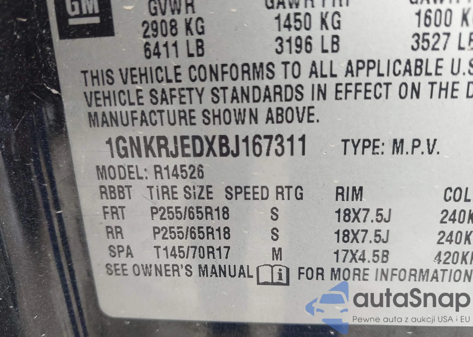• VIN 1GNKRJEDXBJ167311