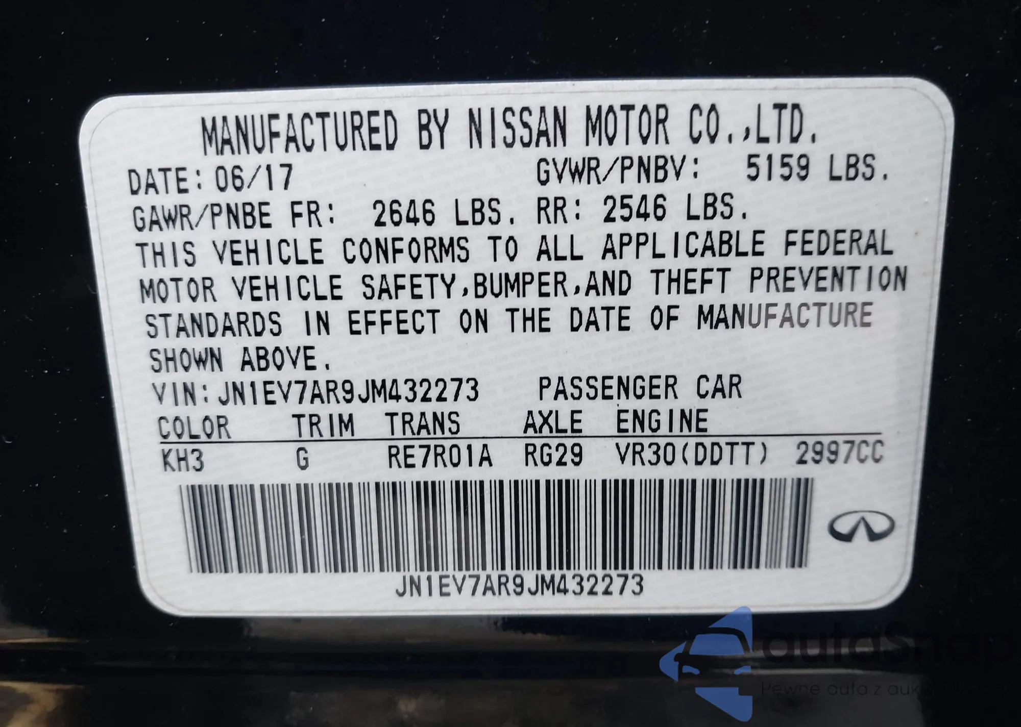 LOT: 43899987 VIN: JN1EV7AR9JM432273