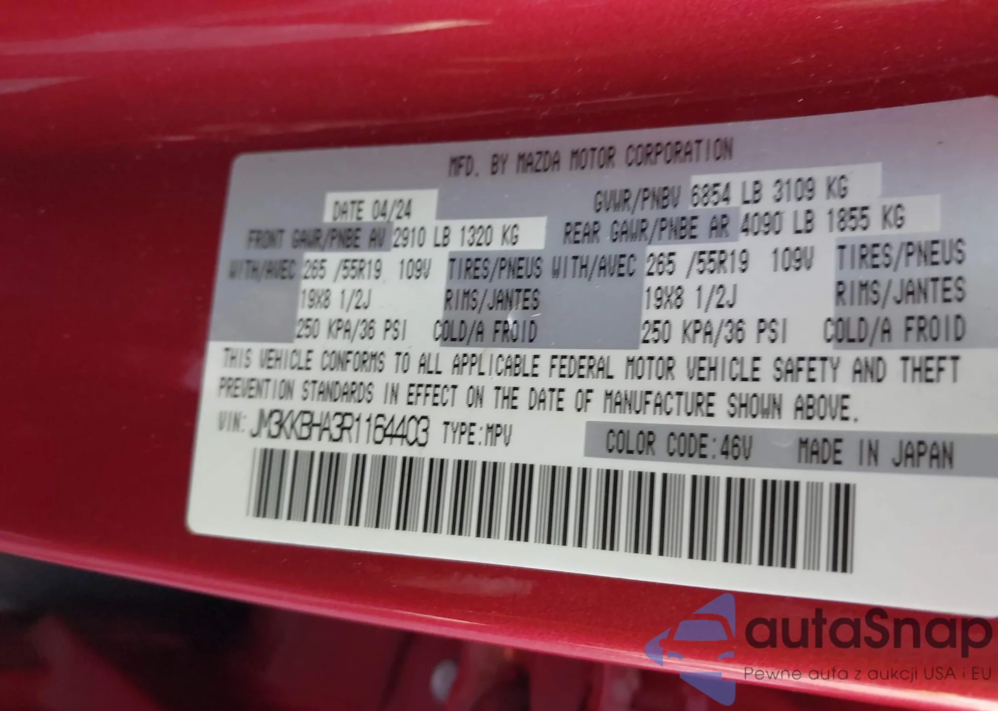 LOT: 43973230 VIN: JM3KKBHA3R1164403