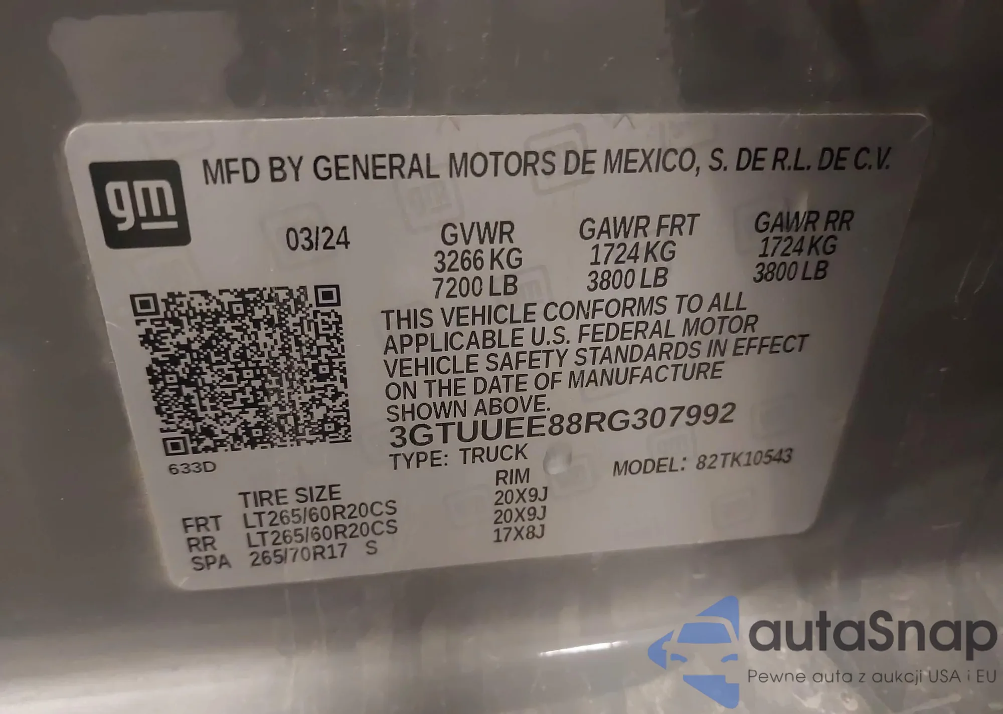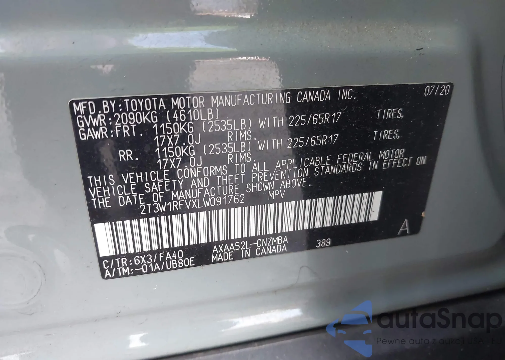 LOT: 43992692 VIN: 2T3W1RFVXLW091762