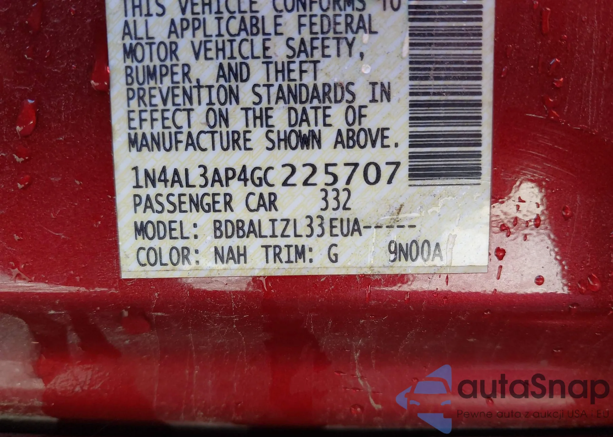 • VIN 1N4AL3AP4GC225707