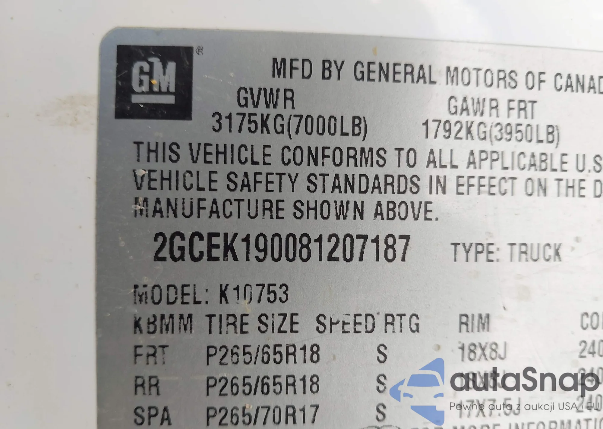 • VIN 2GCEK190081207187