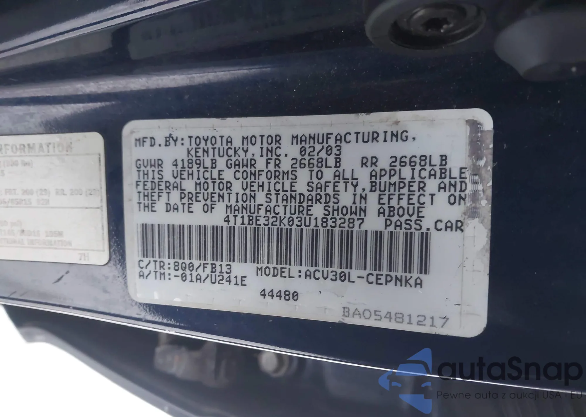 • VIN SALSK2D43BA715632